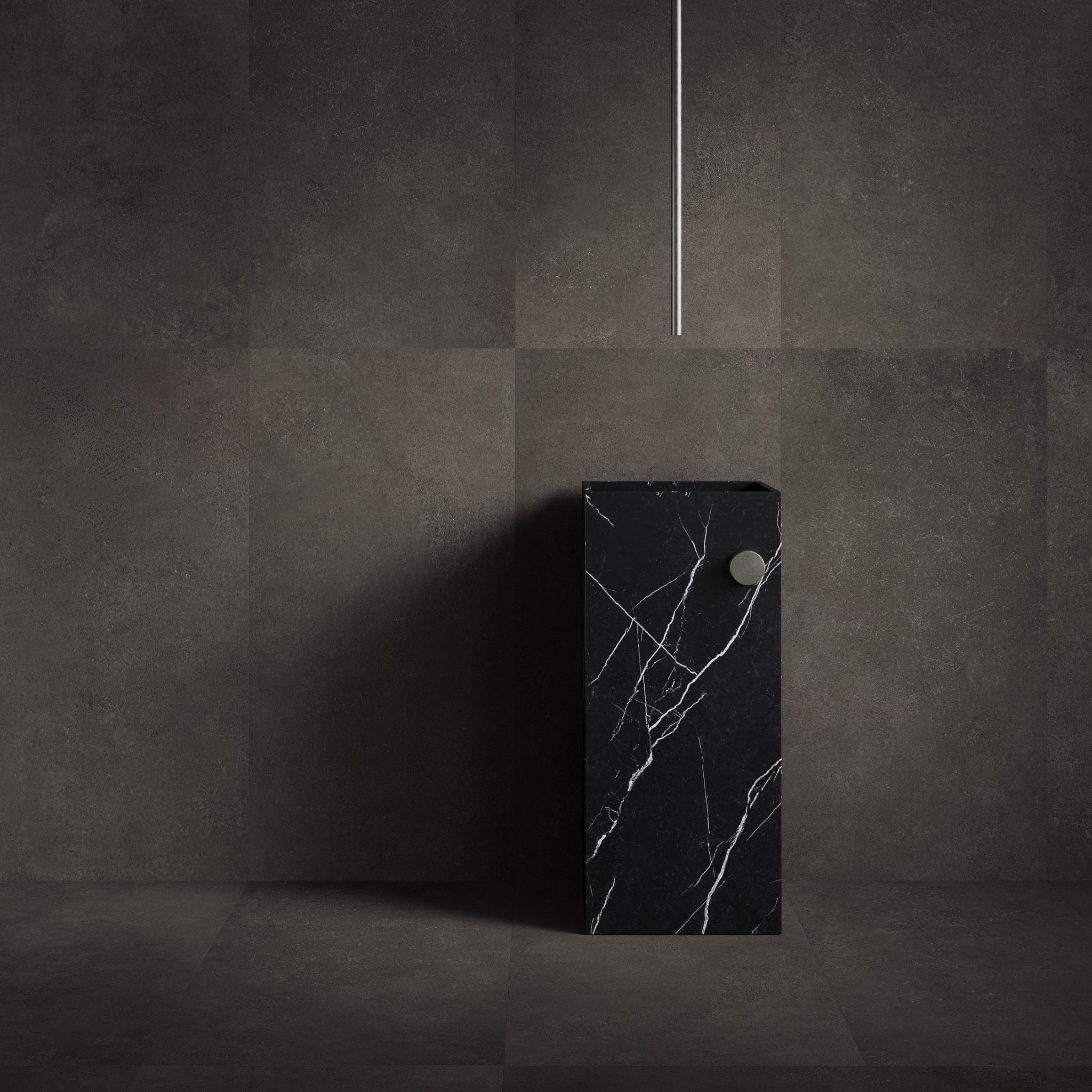 Forma Notte porcelain tile is defined by a deep charcoal tone that recalls the endurance of architectural surfaces. Its matte finish creates clarity and contrast, shaping interiors with modern precision. Crafted in Italy, it endures daily use while retaining striking presence. Notte lends a bold yet versatile foundation to bathroom spaces.