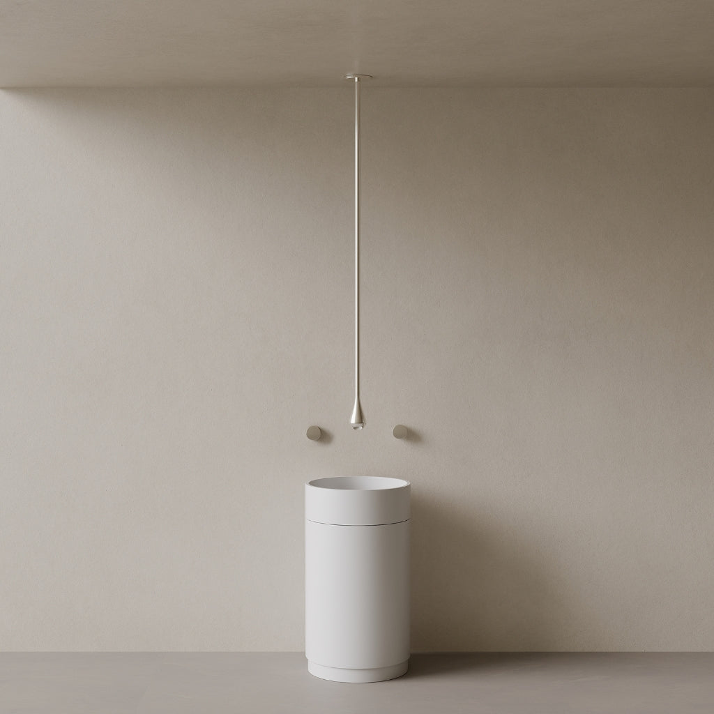 This Raindrop Ceiling-Mounted Faucet introduces a sculptural silhouette to your bathroom, balancing bold presence with refined simplicity. Crafted from lead-free brass, it’s available in single knob or widespread configurations, with varied spout lengths to accommodate different ceiling heights. Suspended with intention, it becomes a defining element in contemporary spaces—designed to elevate routine into ritual and shape your sanctuary.