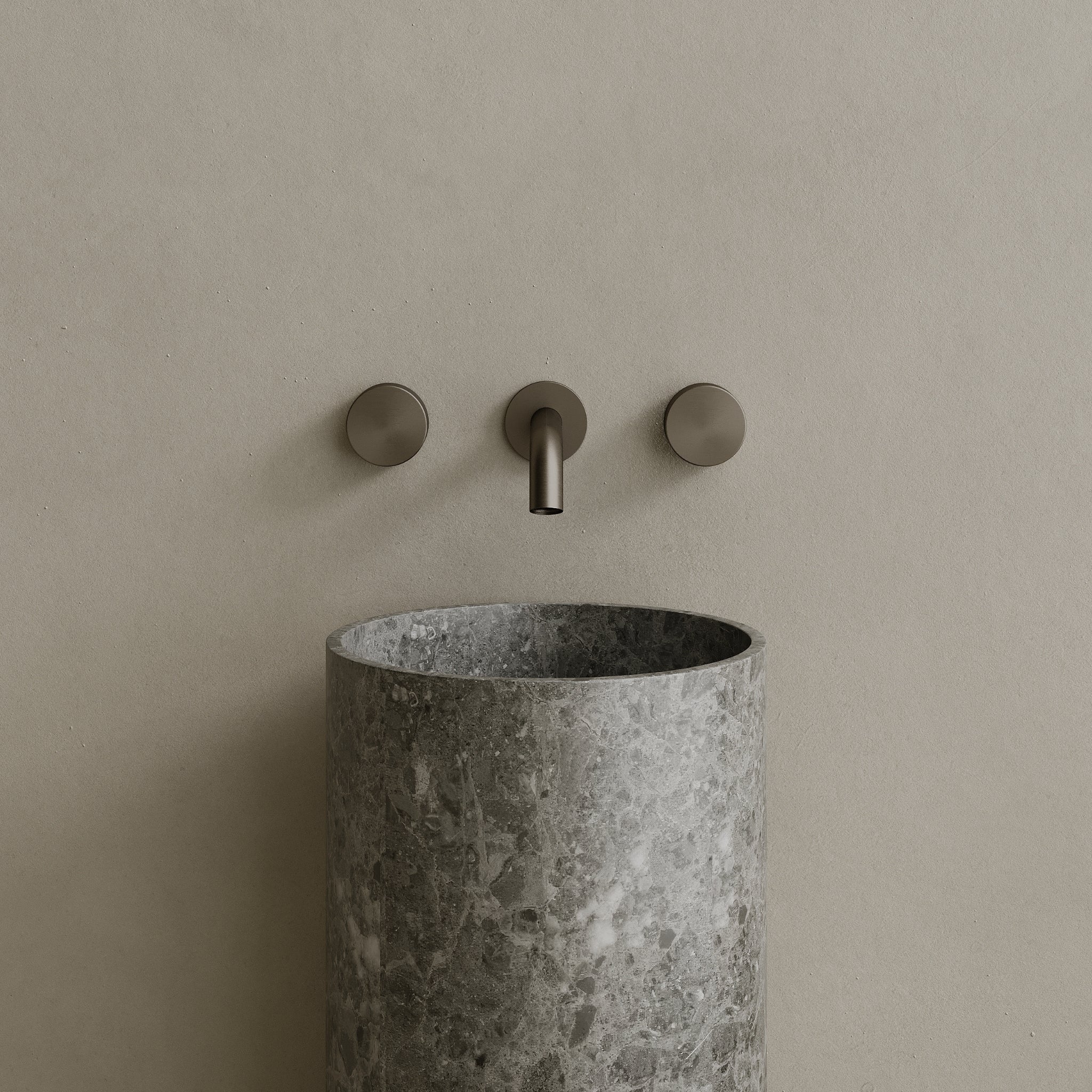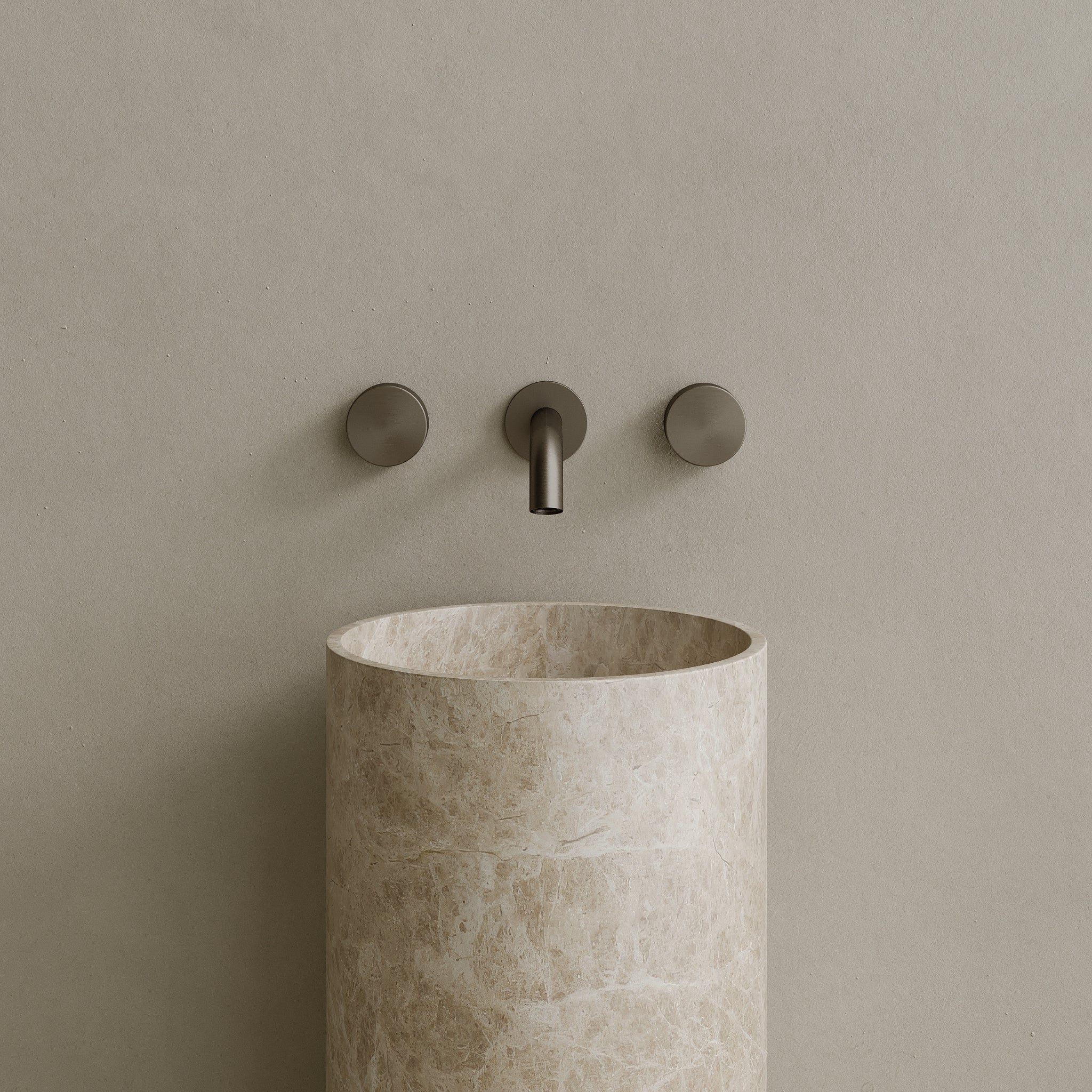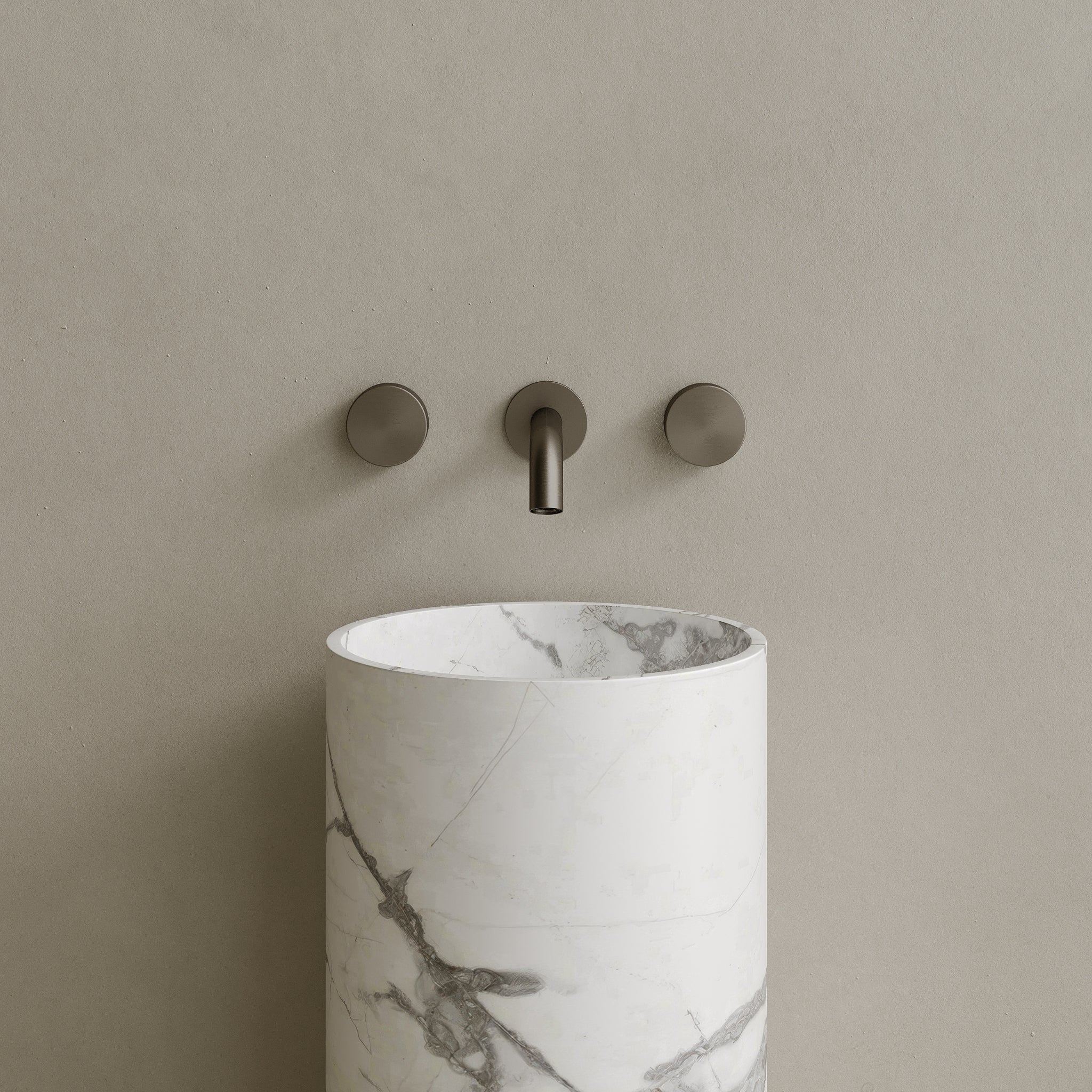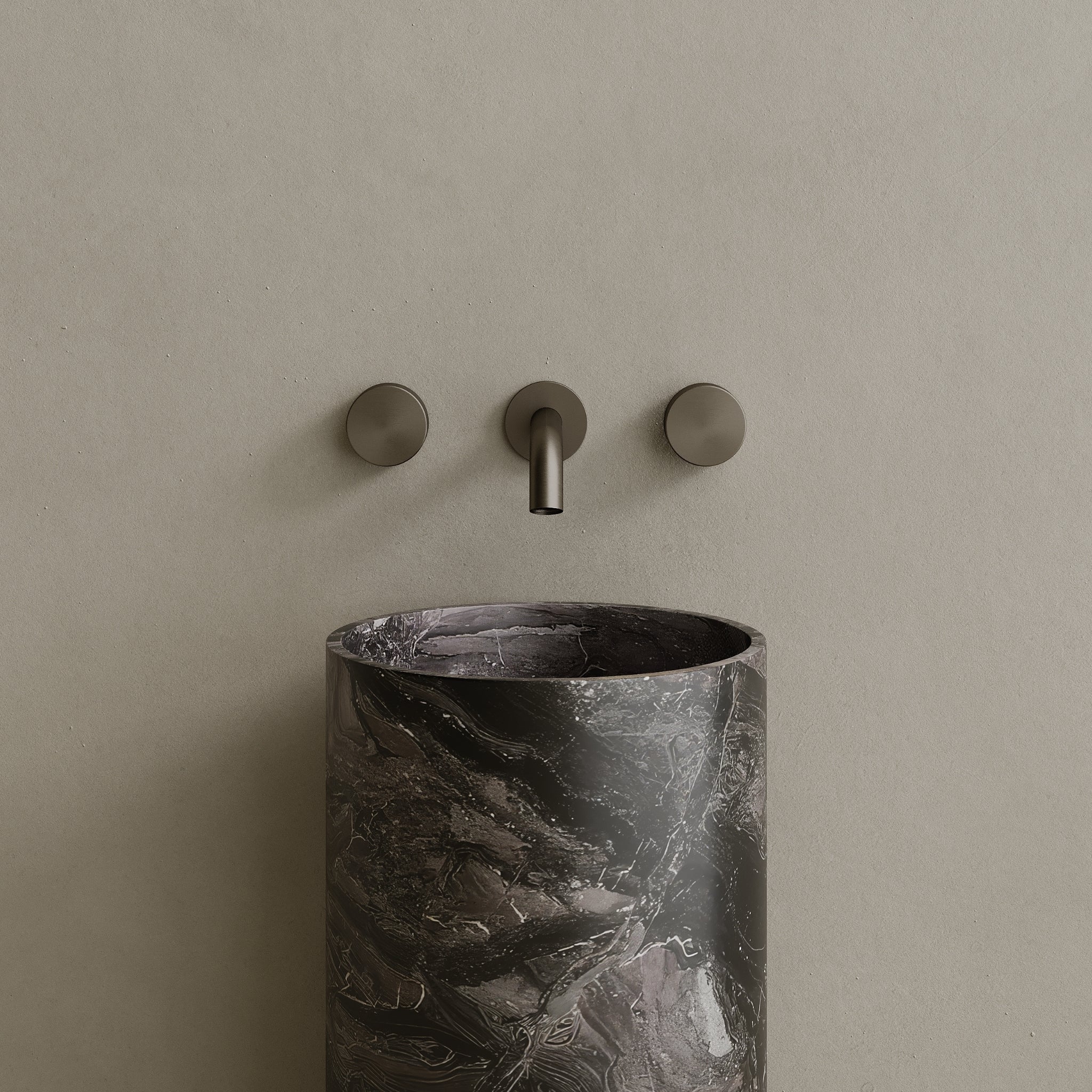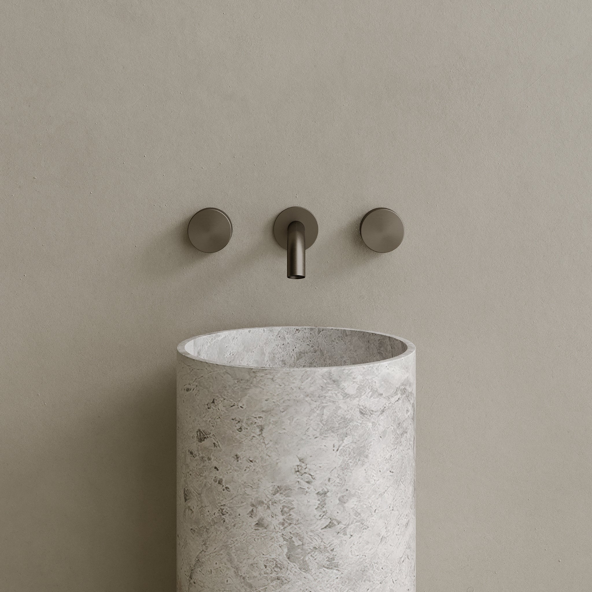 The Colva Freestanding Pedestal Sink introduces a refined sculptural silhouette with its slim, rounded form and minimalist profile. Hand-carved from natural stone, this monolithic sink offers a fluid presence and smooth surface, making it an understated yet impactful addition to any contemporary bath space.
