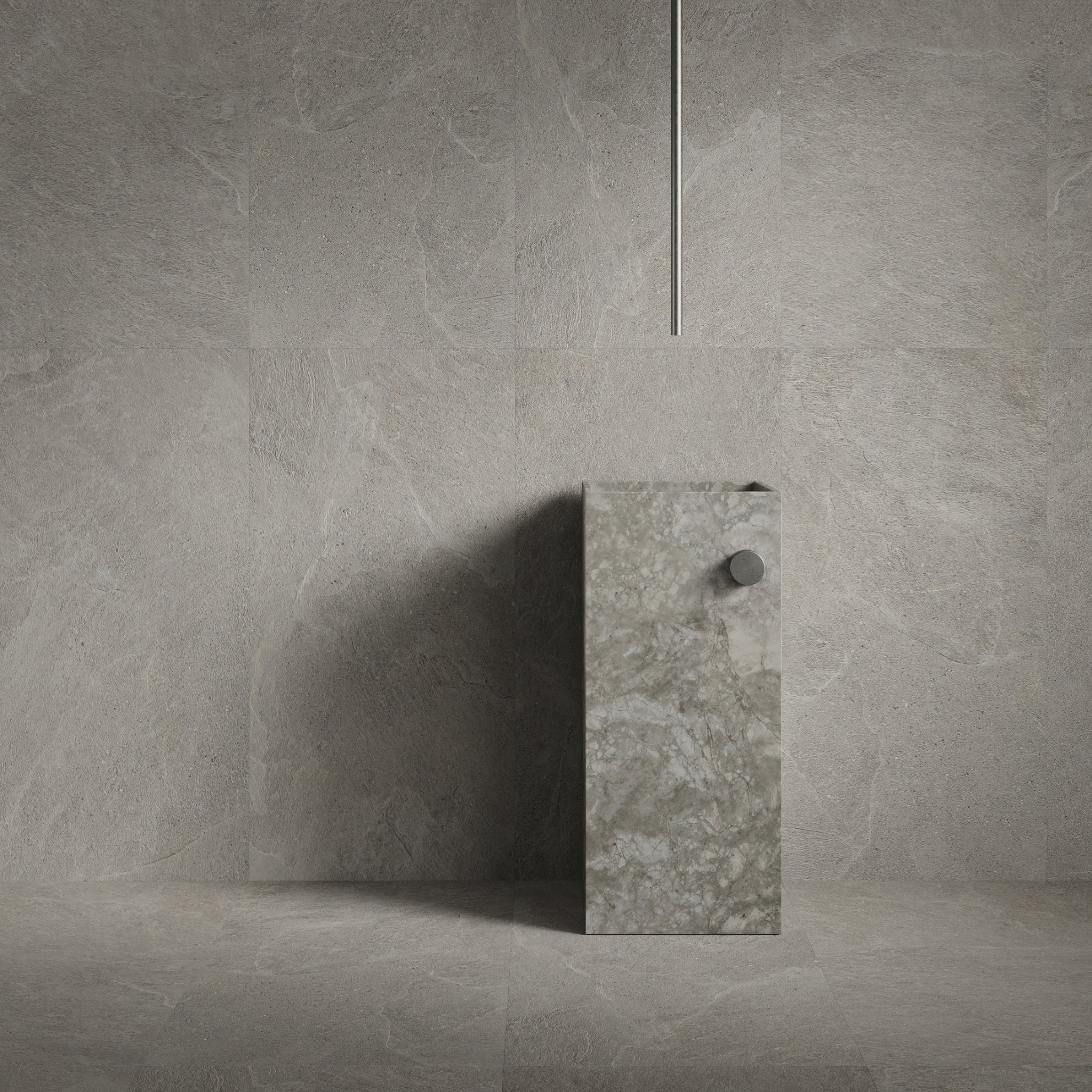 Novaria Steel porcelain tile draws from industrial surfaces, defined by a deep grey matte finish. Its presence adds bold clarity to interiors, shaping them with precision. Crafted in Italy, it blends performance with visual expression. Steel enriches modern spaces with defined character.