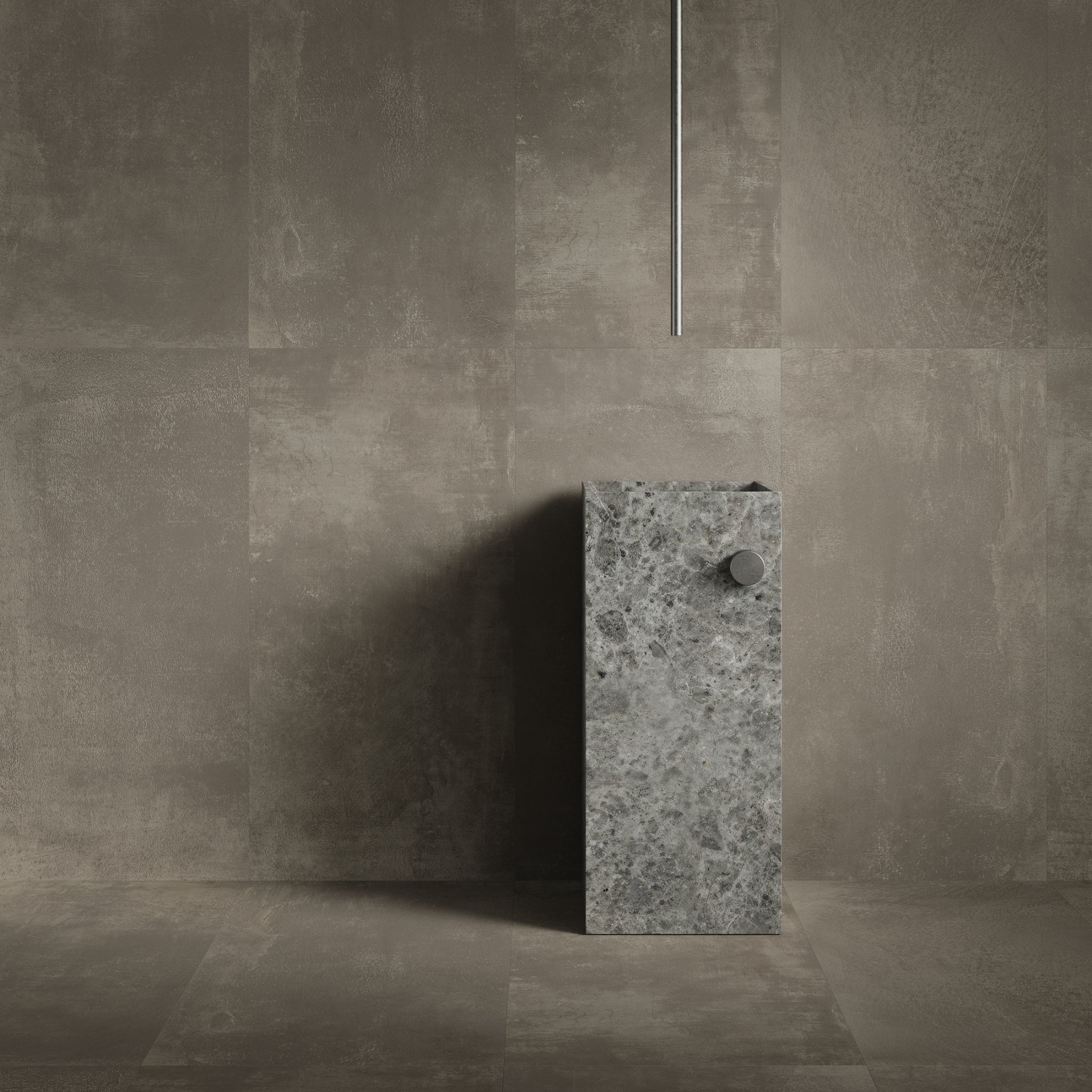 Urbana Stone porcelain tile interprets poured concrete in cool grey with a matte surface. Its clean design creates depth without distraction, supporting minimalist interiors. Crafted in Italy, it balances durability with a defined aesthetic. Stone provides a foundation of strength and clarity.