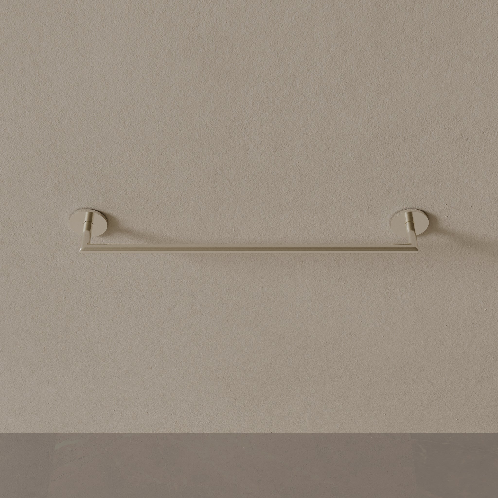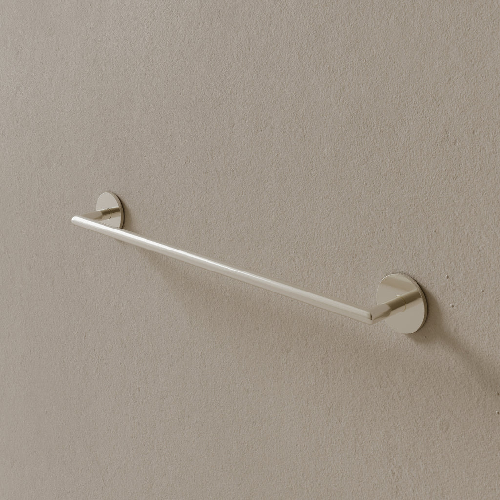 Finished in corrosion-resistant PVD and constructed with a solid brass core, this 26-inch modern towel rod integrates effortlessly into modern bathrooms, offering extended length for holding multiple towels.