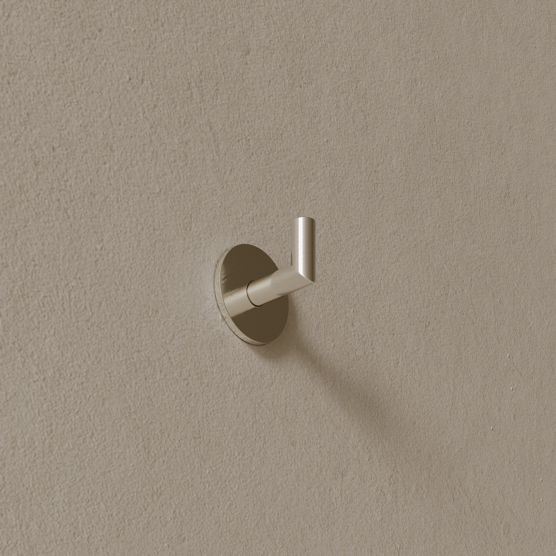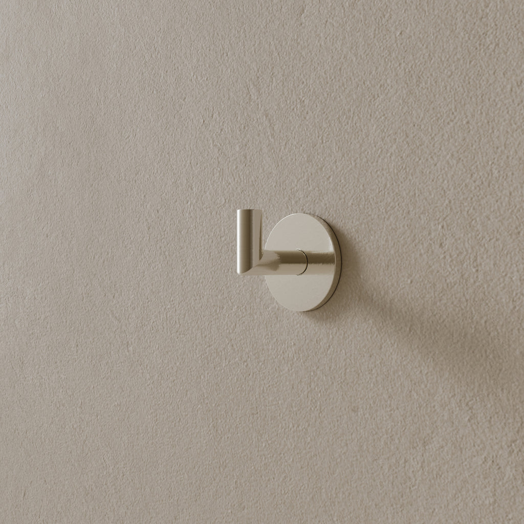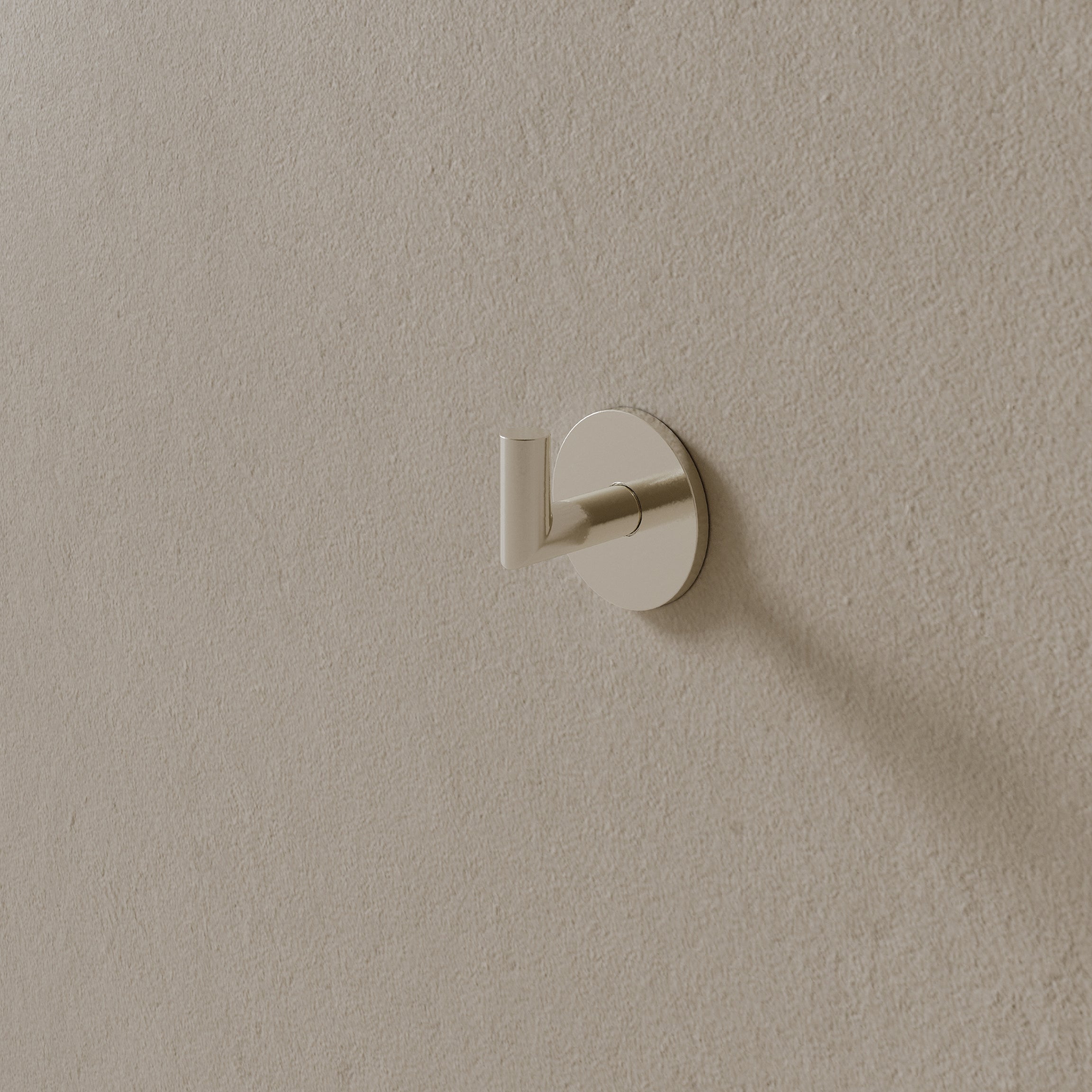 Crafted with a solid brass core and a corrosion-resistant PVD finish, this modern robe hook integrates effortlessly into modern bathrooms, providing a solution for hanging robes, towels, or accessories.