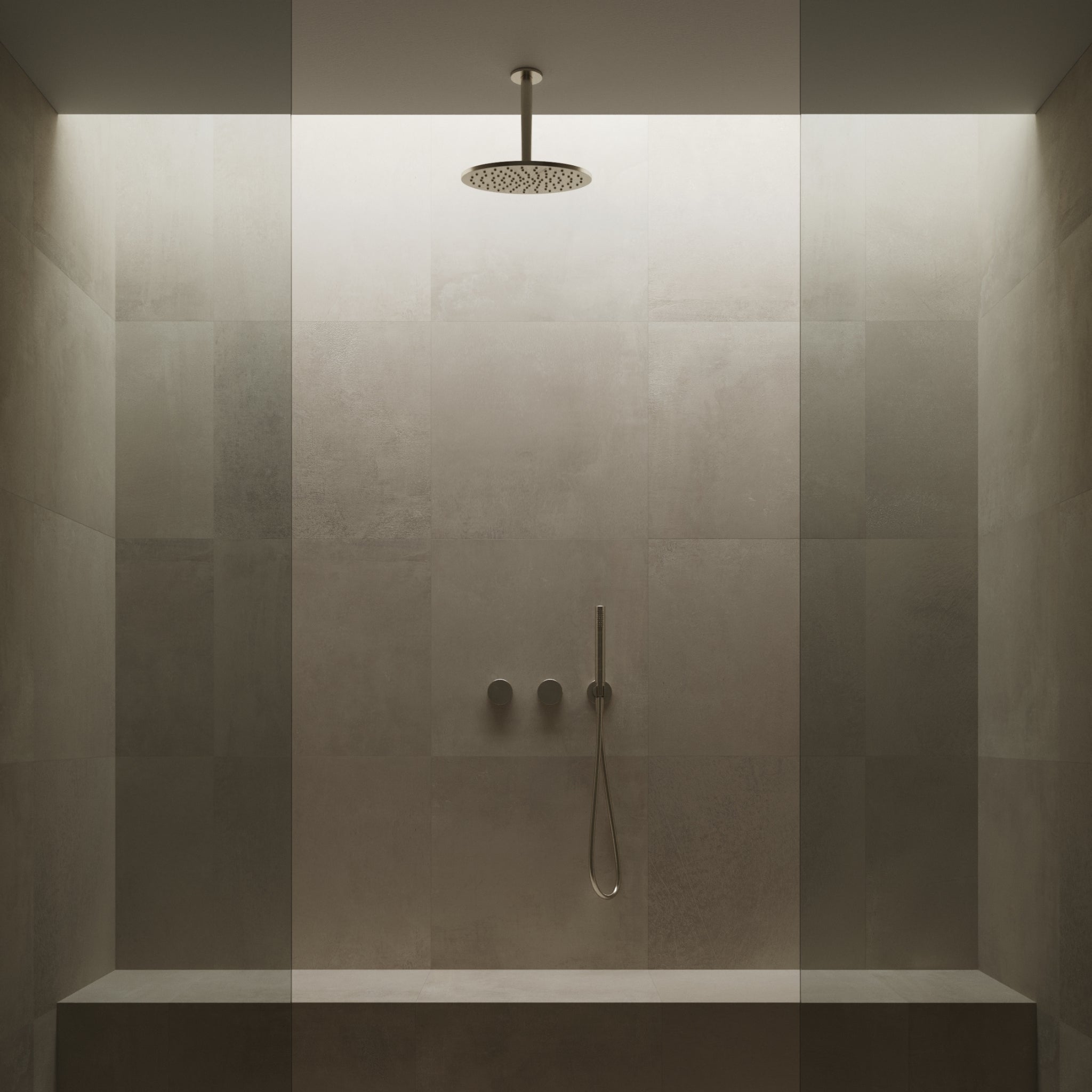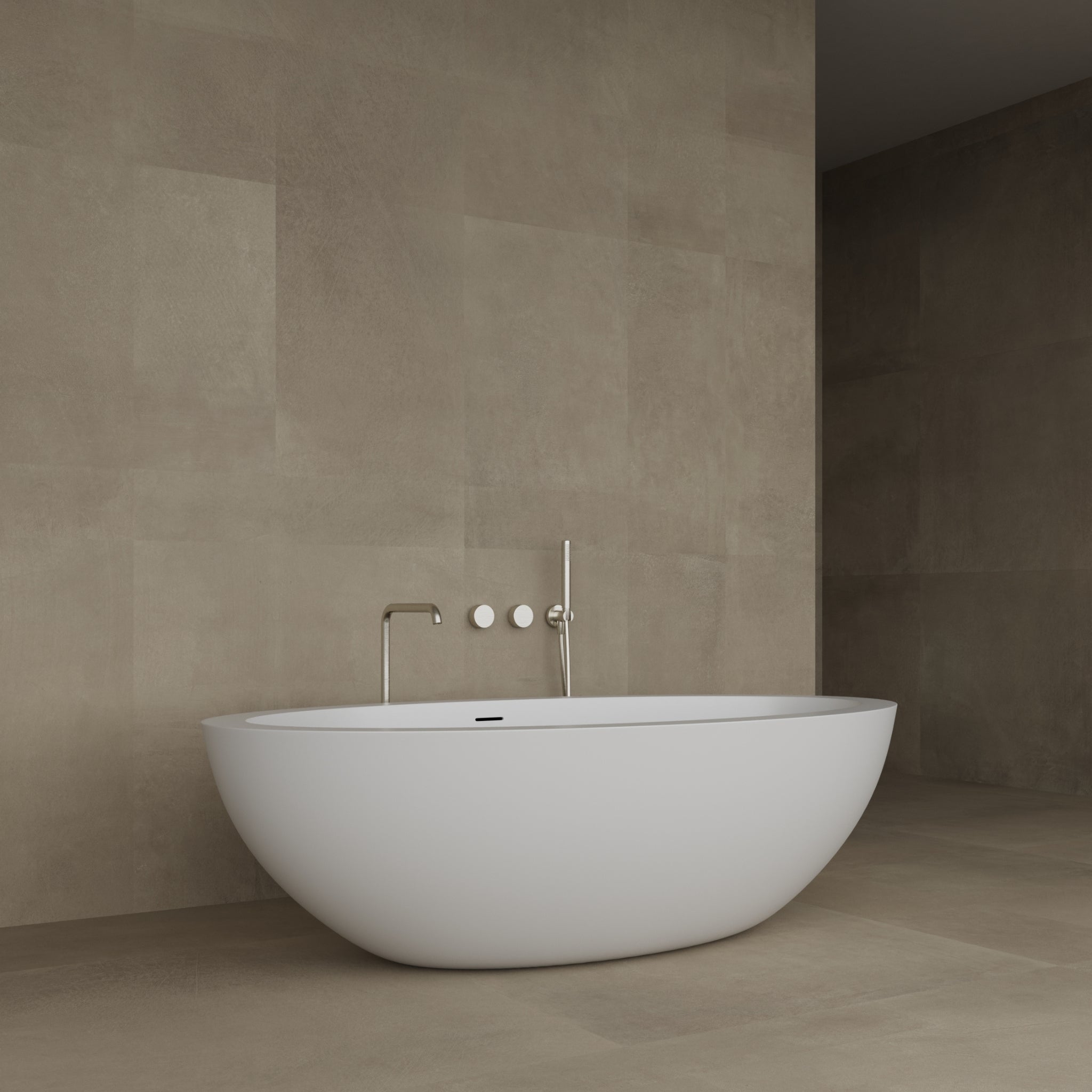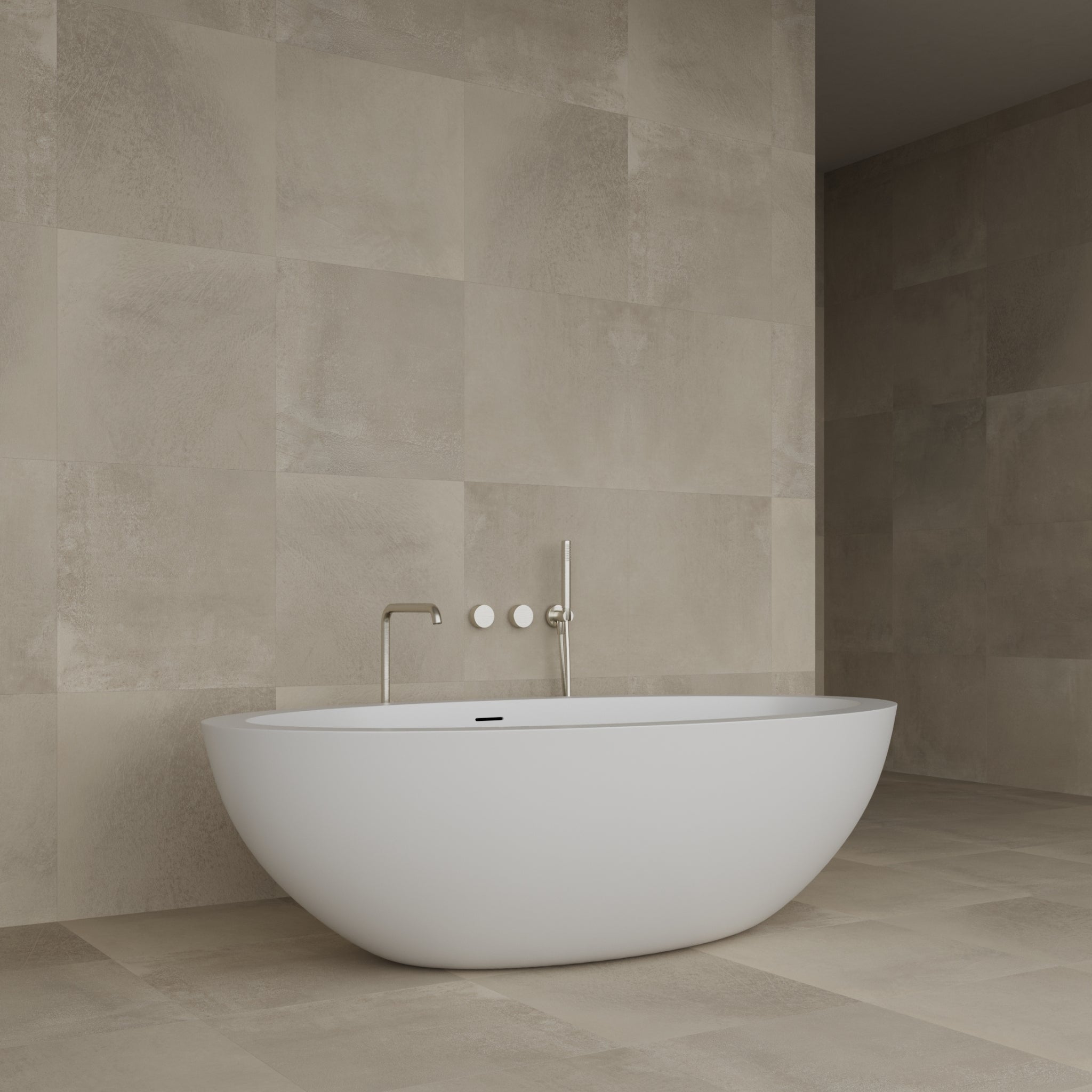 Urbana Duna porcelain tile draws inspiration from desert landscapes, expressed through golden undertones. Its matte surface creates warmth and form, shaping interiors with natural character. Italian-made, it provides both resilience and artistry. Duna enhances modern bathrooms with a balanced presence.