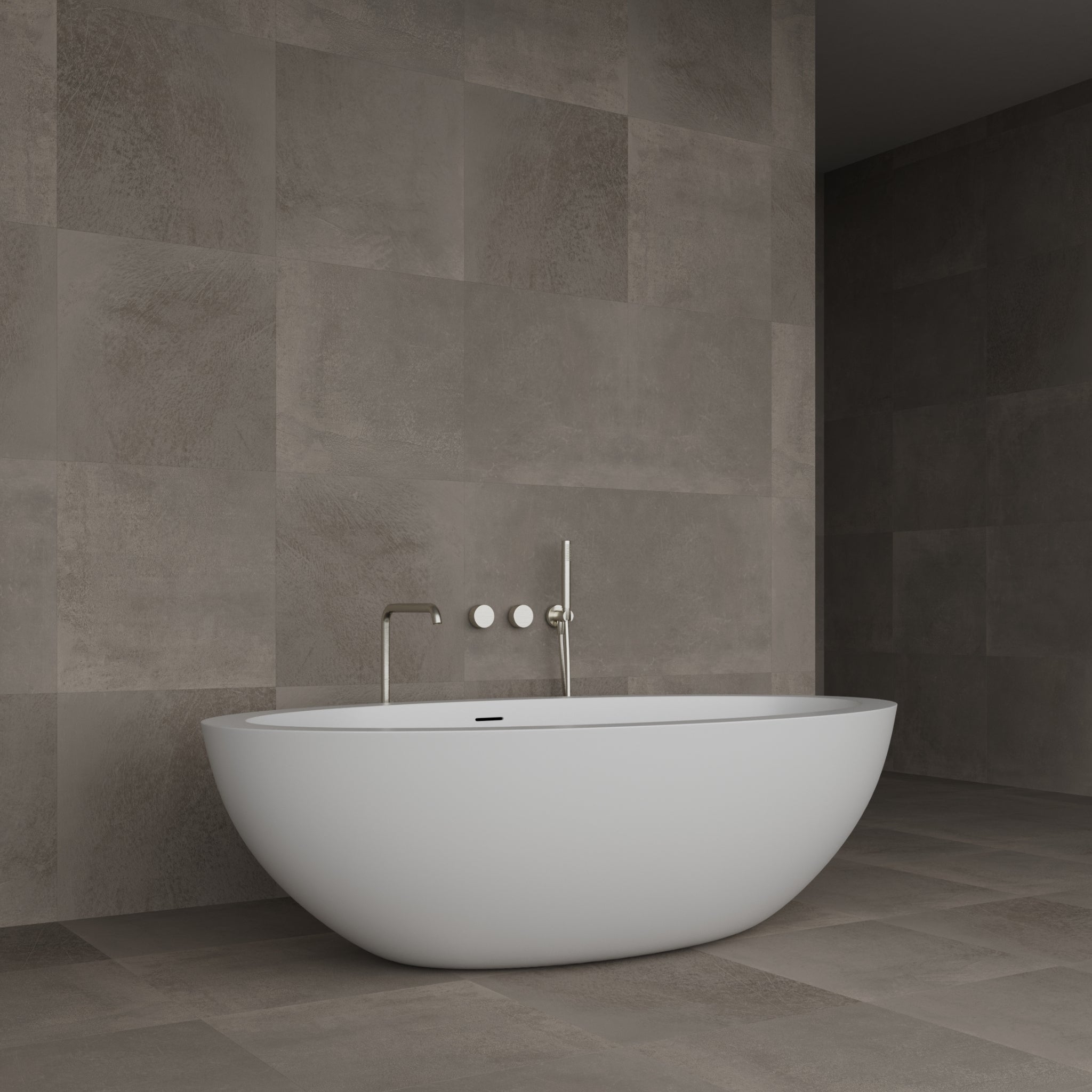 Urbana Graphite porcelain tile reflects industrial influence in a cool grey matte surface. Its texture introduces rhythm and structure to interiors. Italian-made, it balances utility with design presence. Graphite adds depth and focus to modern bathrooms.