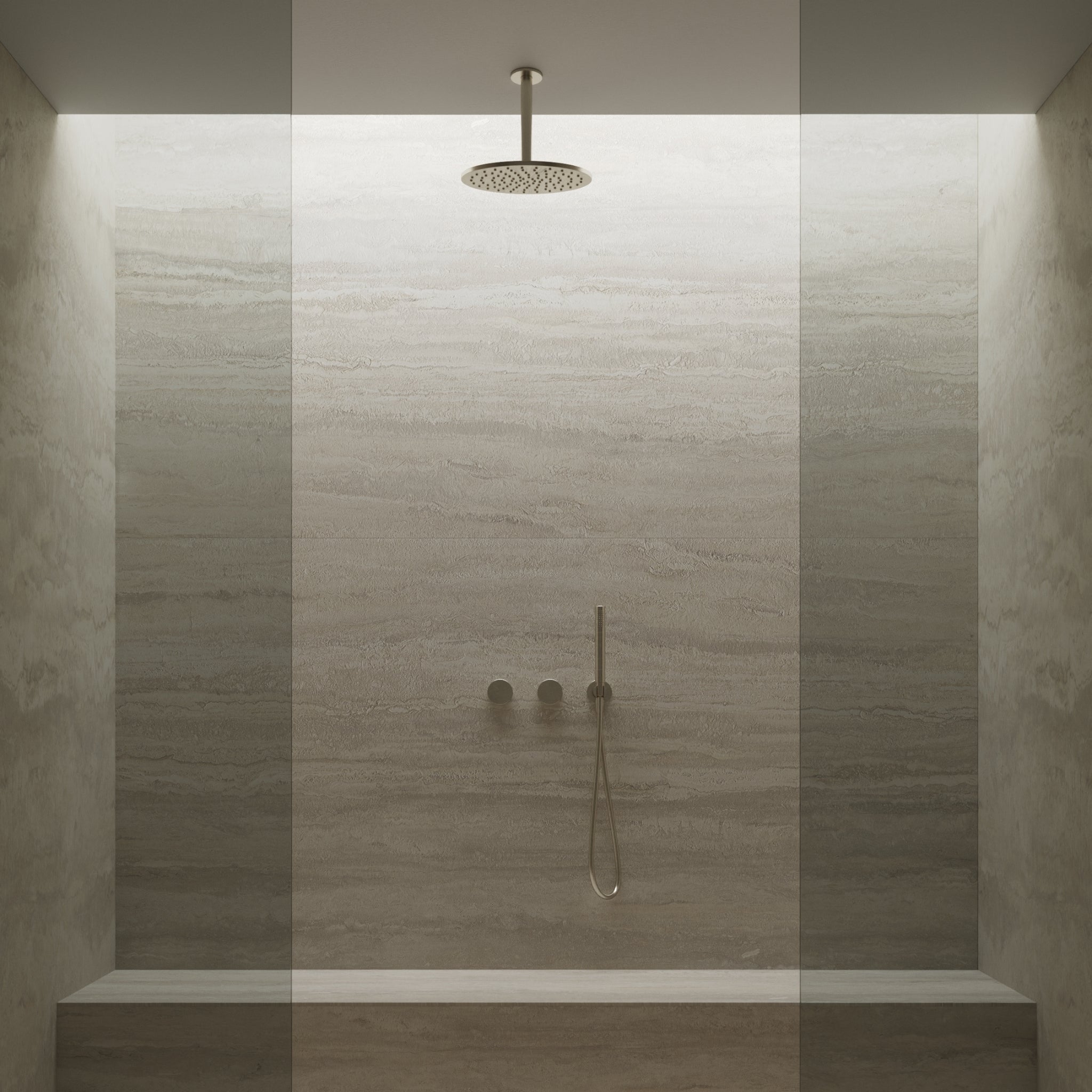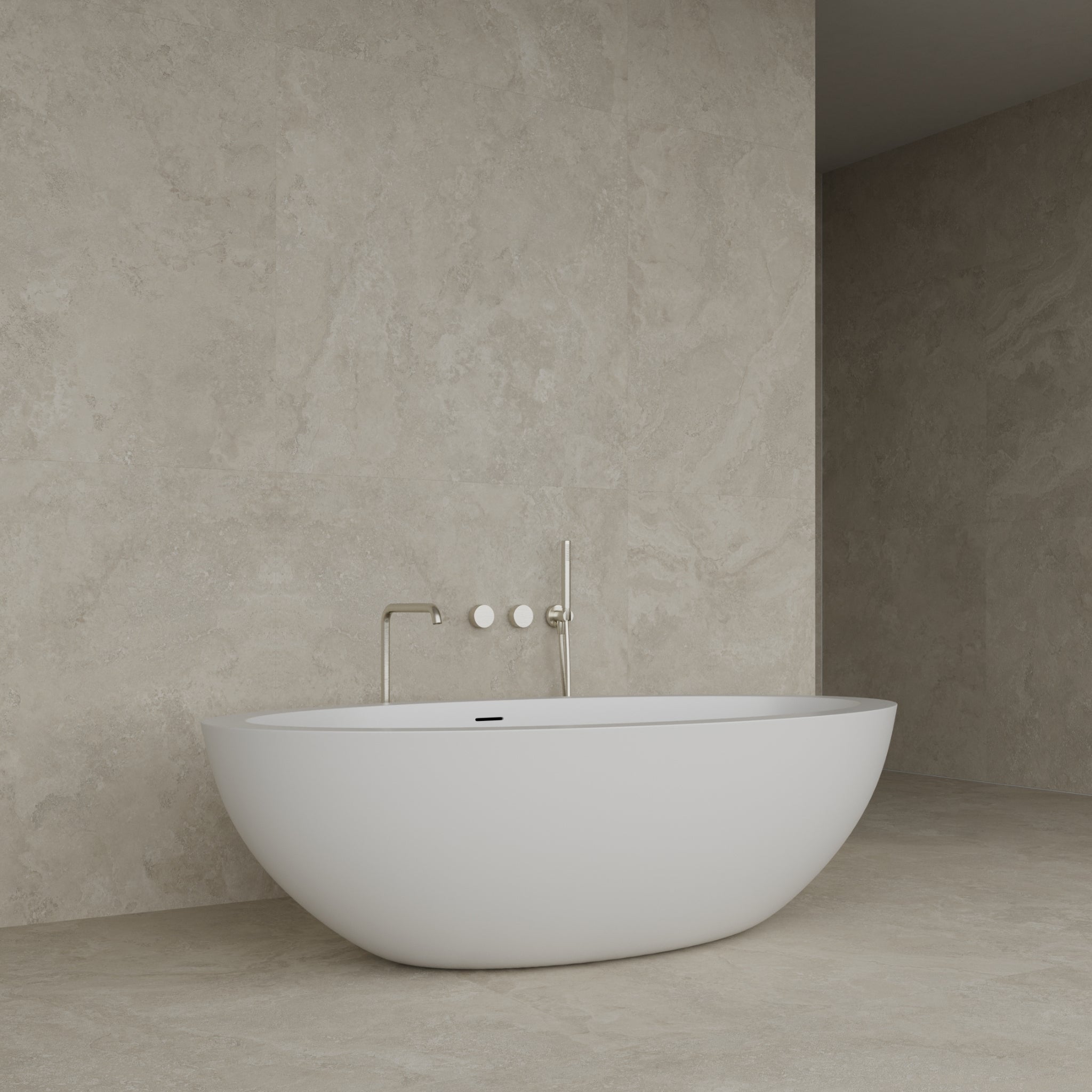 Velora Grigio reinterprets travertine in a modern grey palette, crafted with subtle variation for natural effect. Its matte finish creates a composed base that enhances spatial balance. Italian-made, it withstands daily use while maintaining visual integrity. Grigio delivers a surface that feels steady and measured.