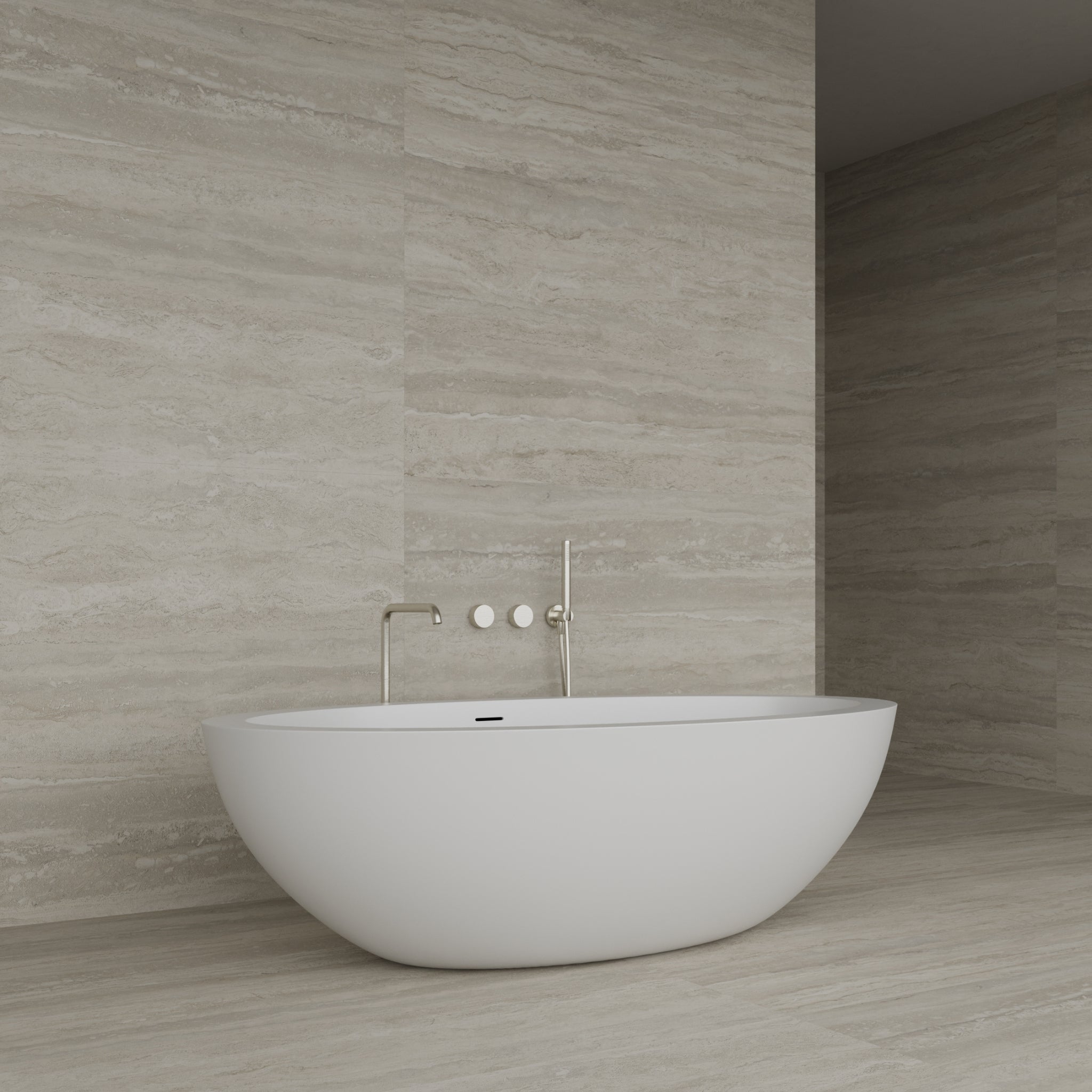 Velora Grigio Vein porcelain tile showcases vein-cut detailing in cool grey tones. Its linear patterns provide rhythm, while the matte surface adds definition with subtlety. Made in Italy, it blends lasting quality with structured design. Grigio Vein introduces clarity and depth to interiors.