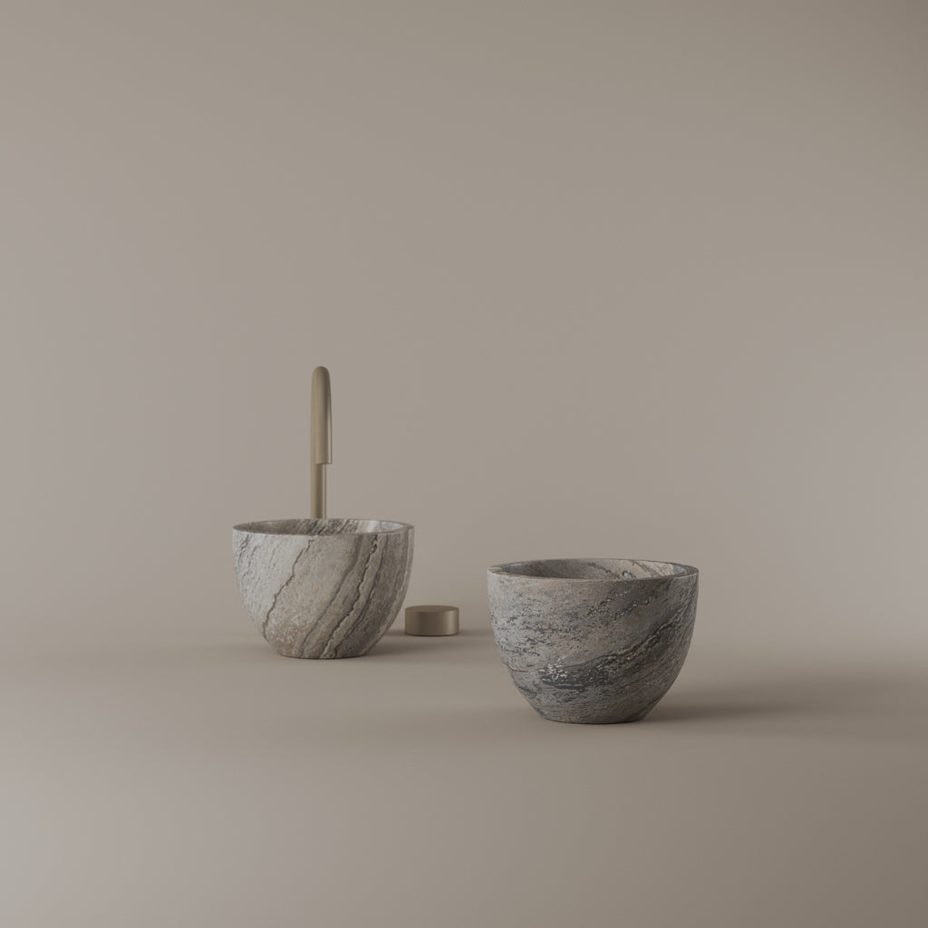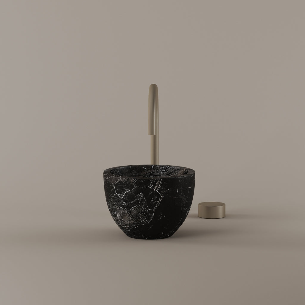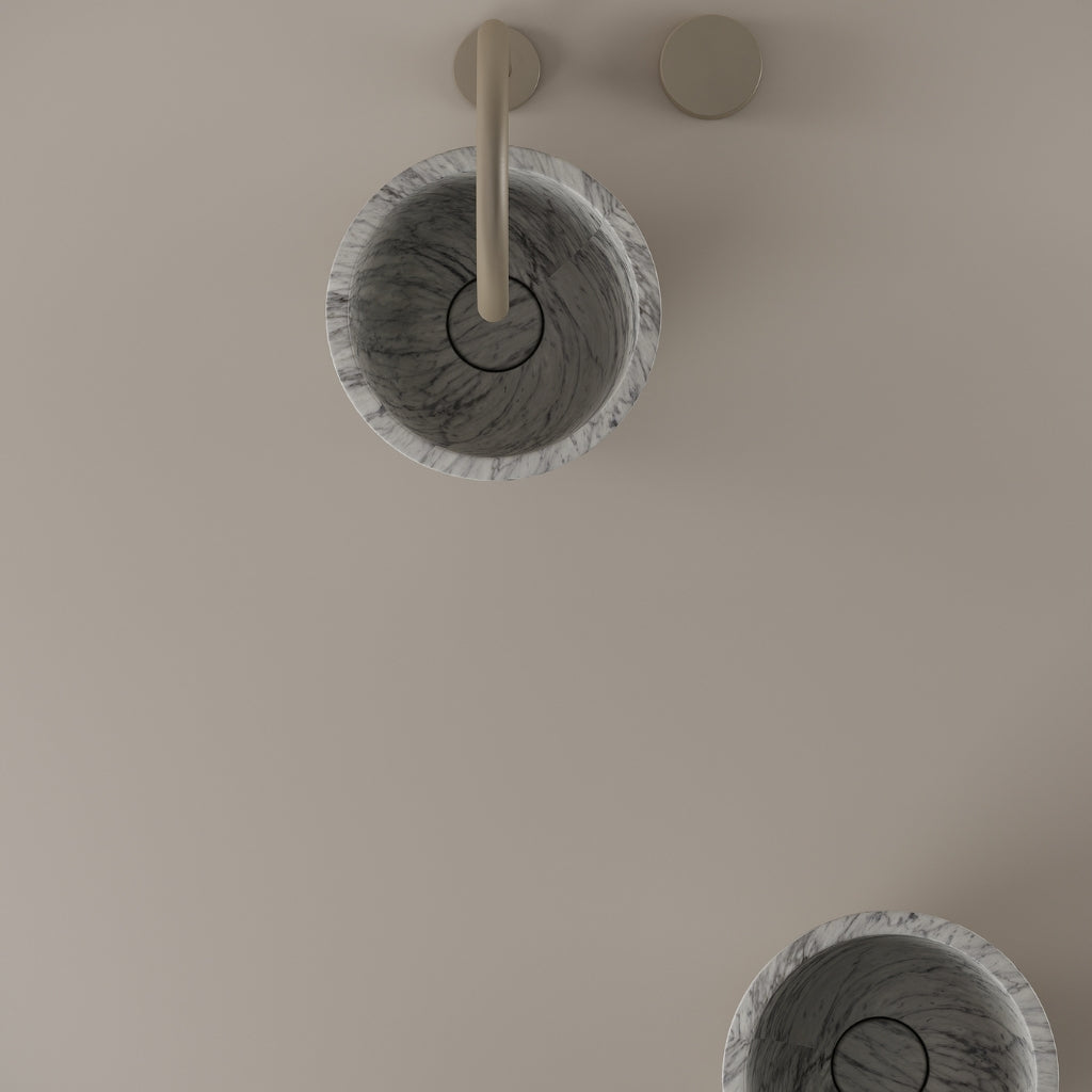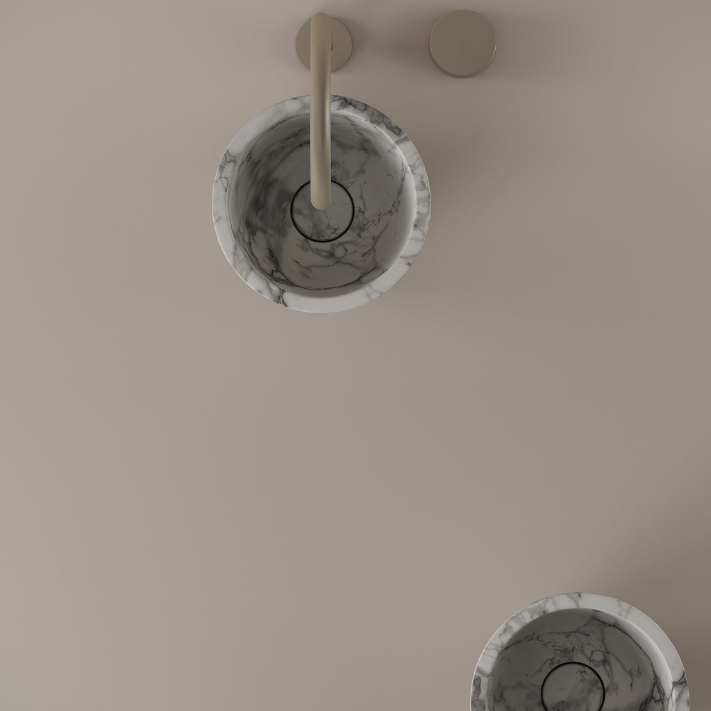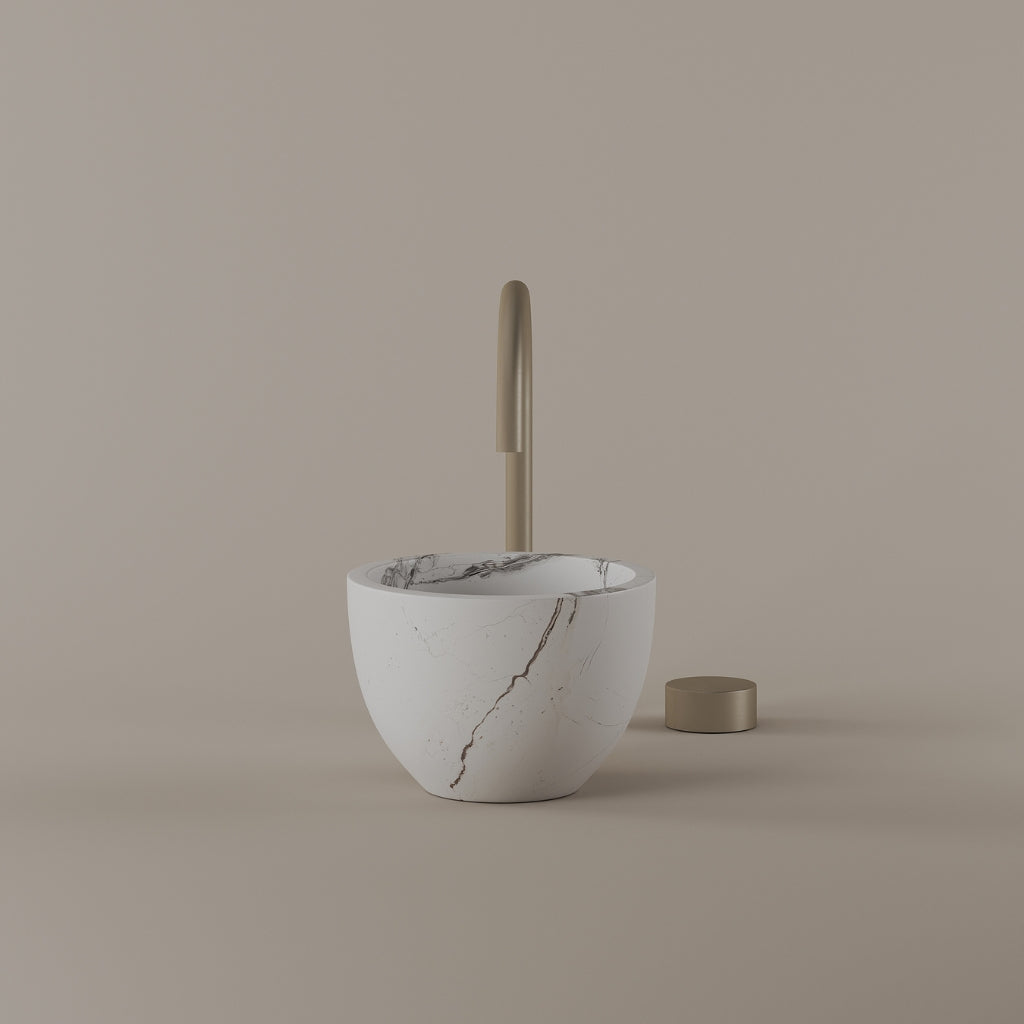 Formed in marble at 9 inches, this round vessel sink creates a concentrated circular basin with a precise form. The compact design supports focused use while maintaining a clear visual presence. Its material variation adds depth without excess.