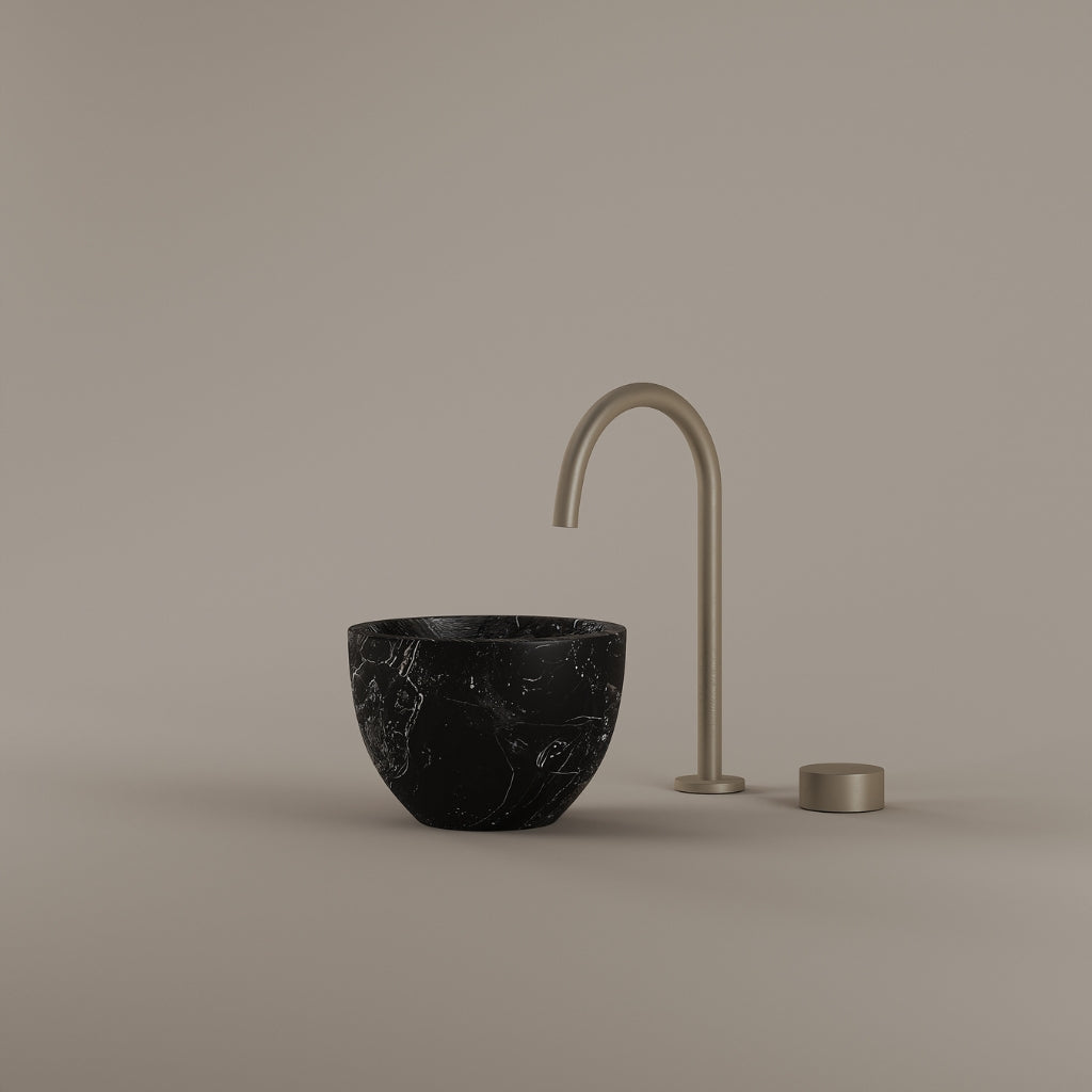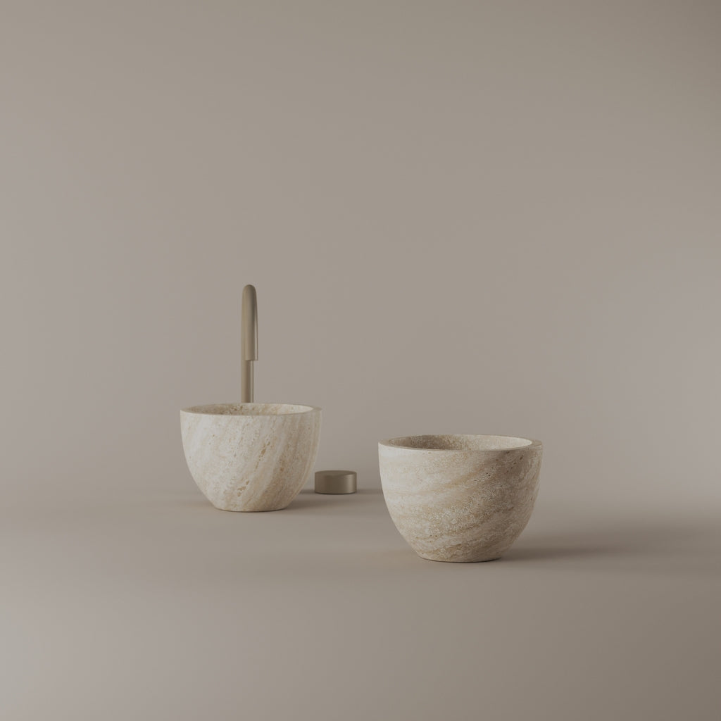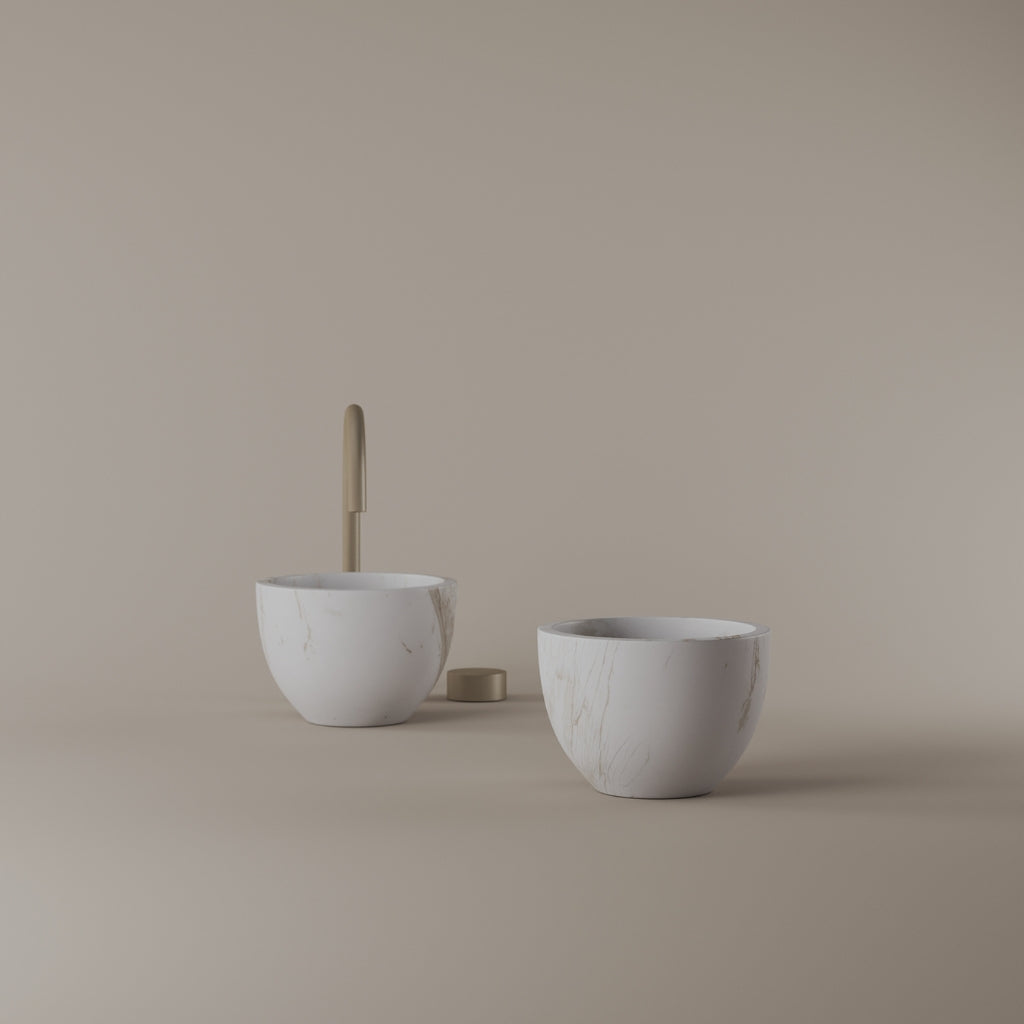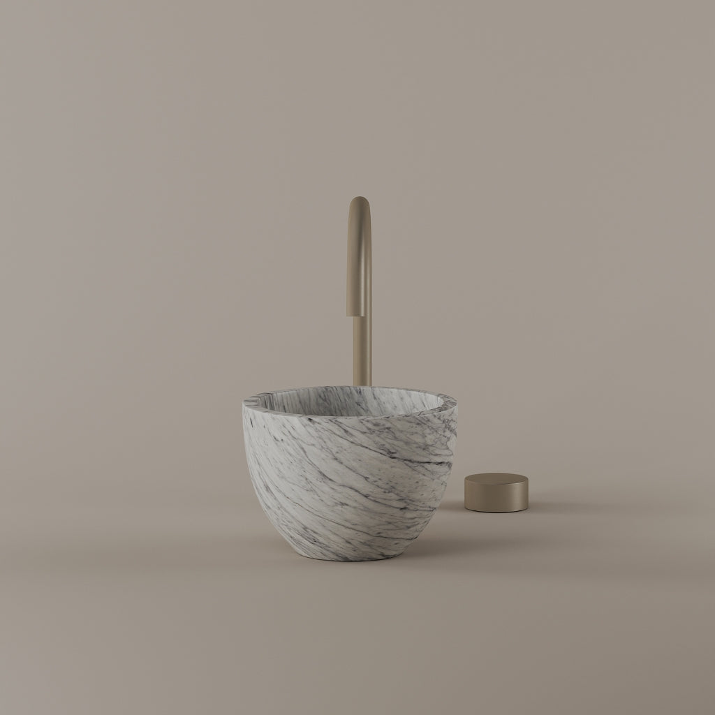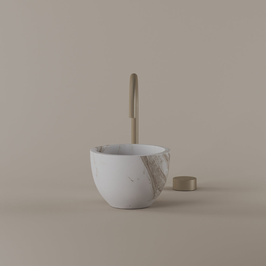 Formed in marble at 9 inches, this round vessel sink creates a concentrated circular basin with a precise form. The compact design supports focused use while maintaining a clear visual presence. Its material variation adds depth without excess.