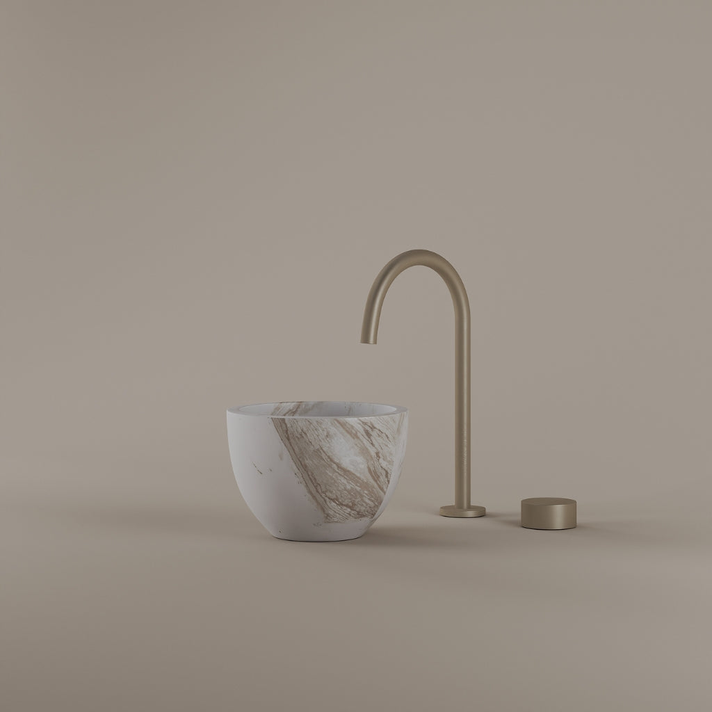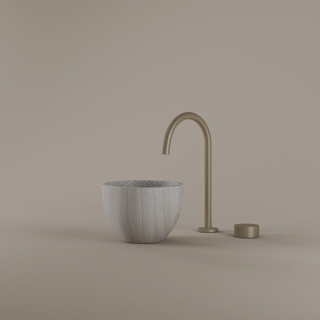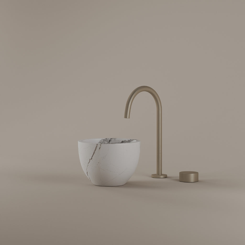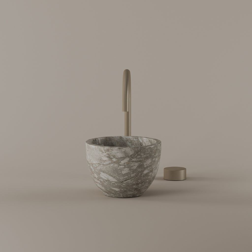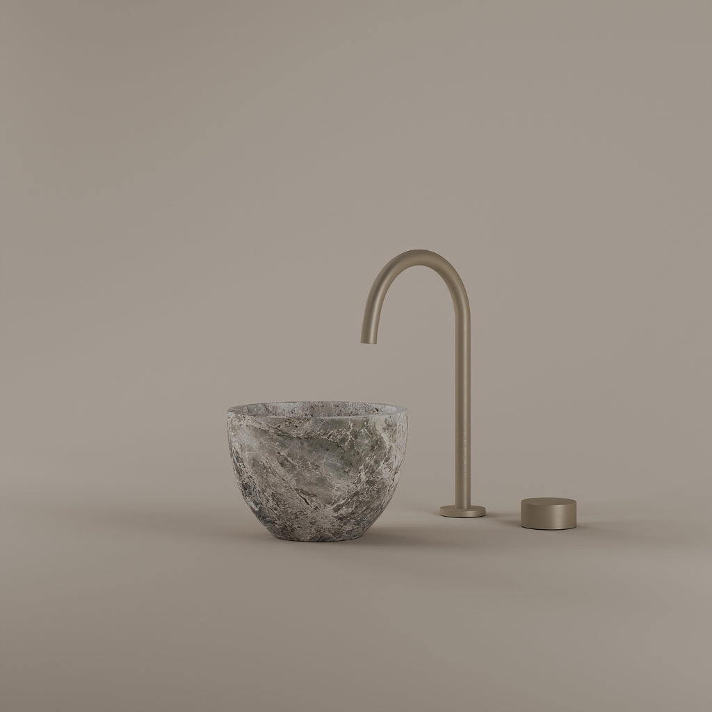 Formed in marble at 9 inches, this round vessel sink creates a concentrated circular basin with a precise form. The compact design supports focused use while maintaining a clear visual presence. Its material variation adds depth without excess.