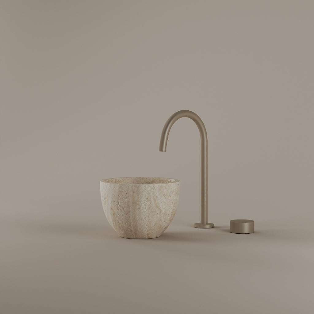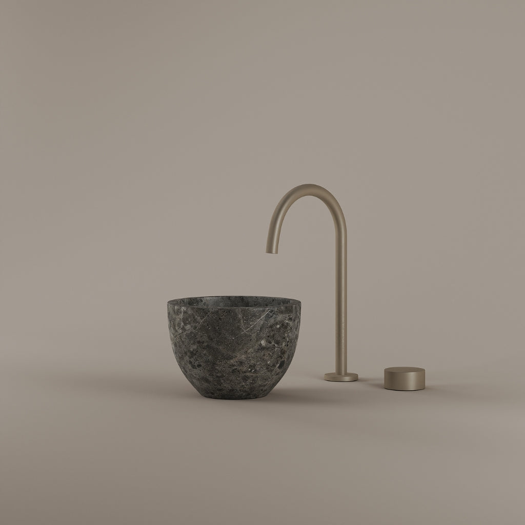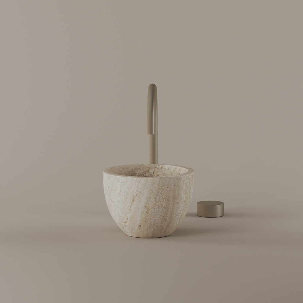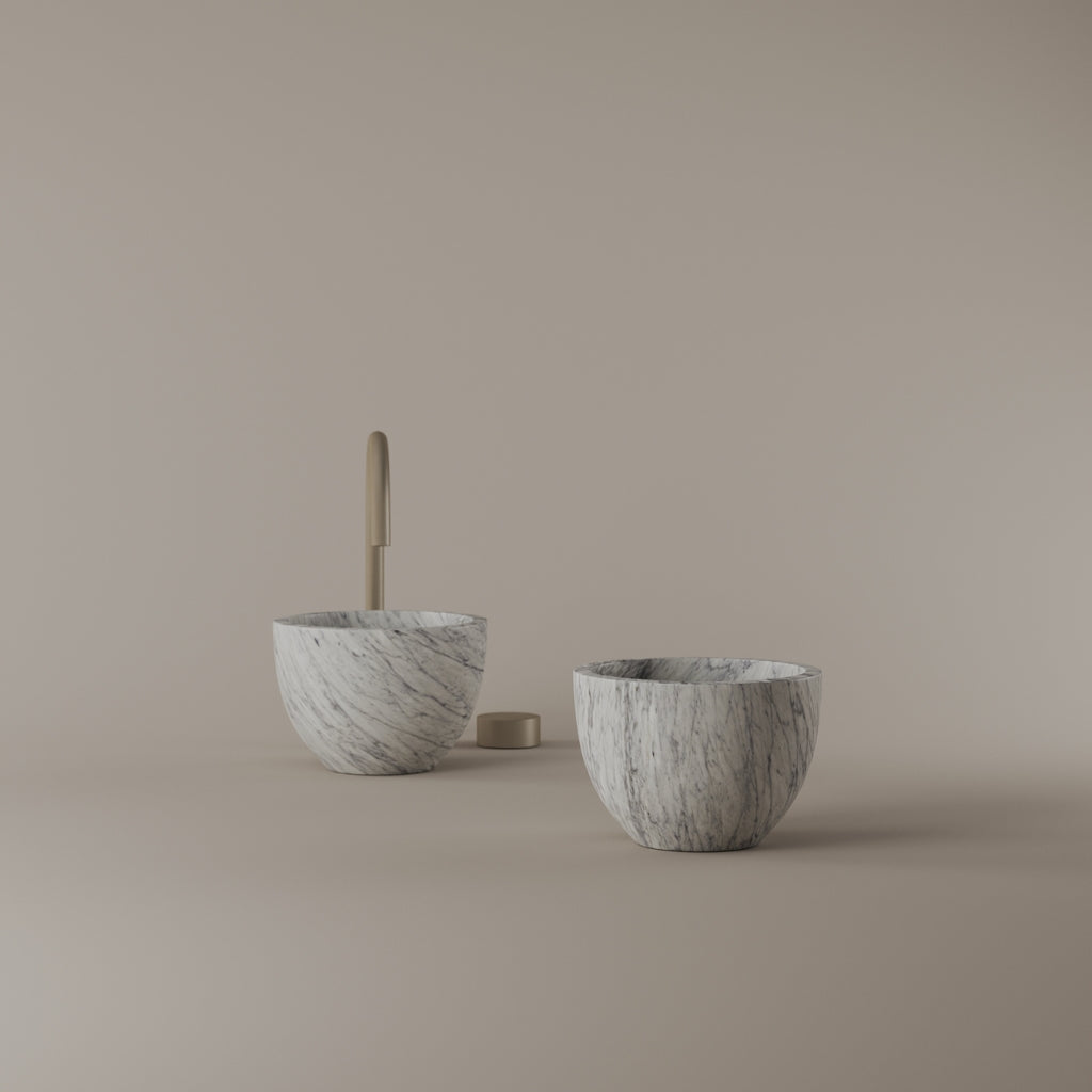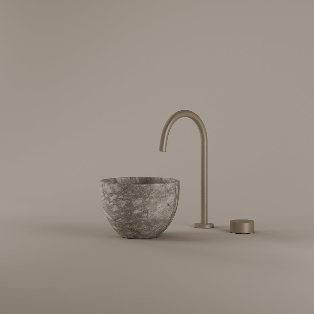 Formed in marble at 9 inches, this round vessel sink creates a concentrated circular basin with a precise form. The compact design supports focused use while maintaining a clear visual presence. Its material variation adds depth without excess.