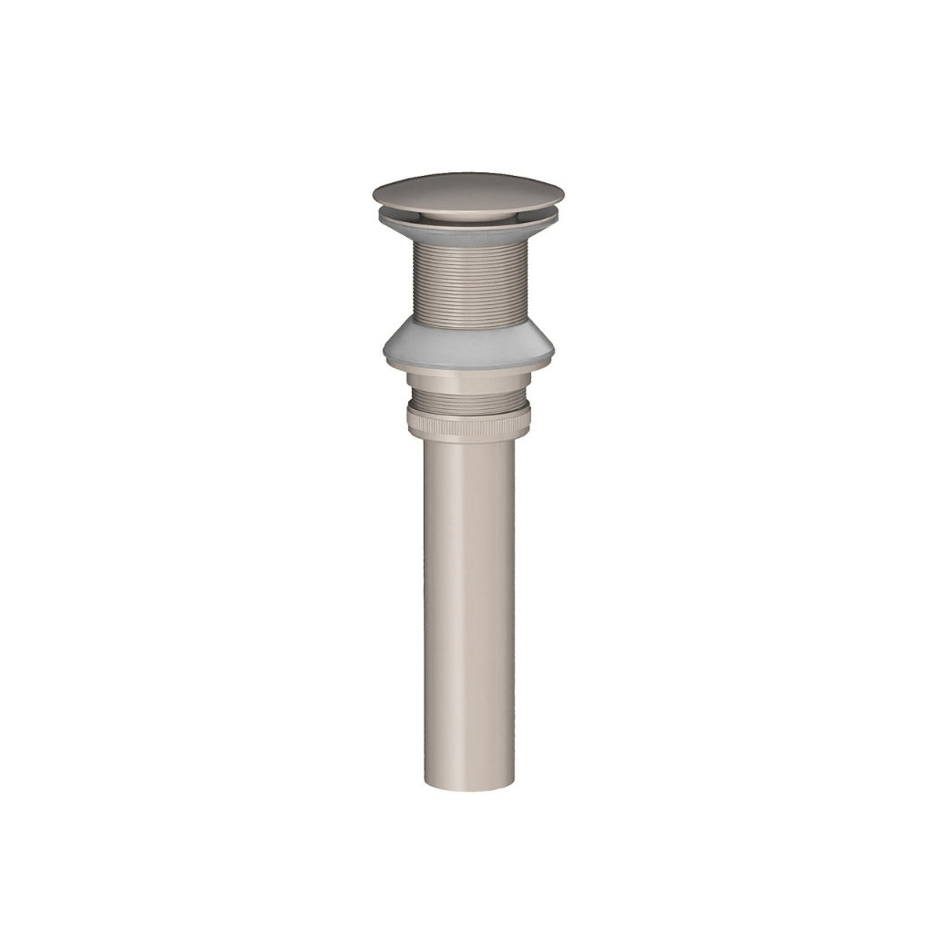 Designed for bathroom sinks without an overflow opening, this pop-up drain ensures dependable drainage with an easy push-to-open function. Constructed from brass for lasting durability, it is available in all coordinating fixture finishes to complement your faucet and bathroom hardware.
