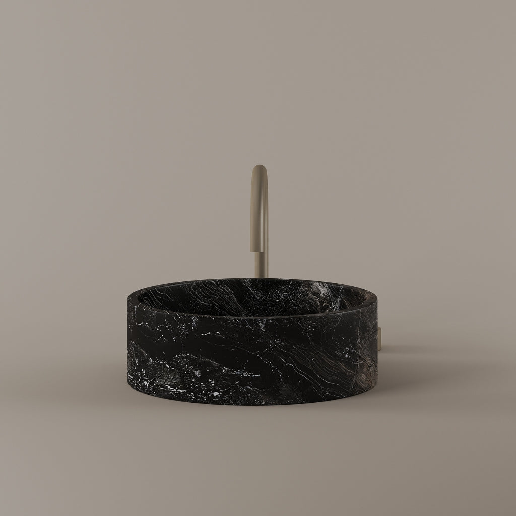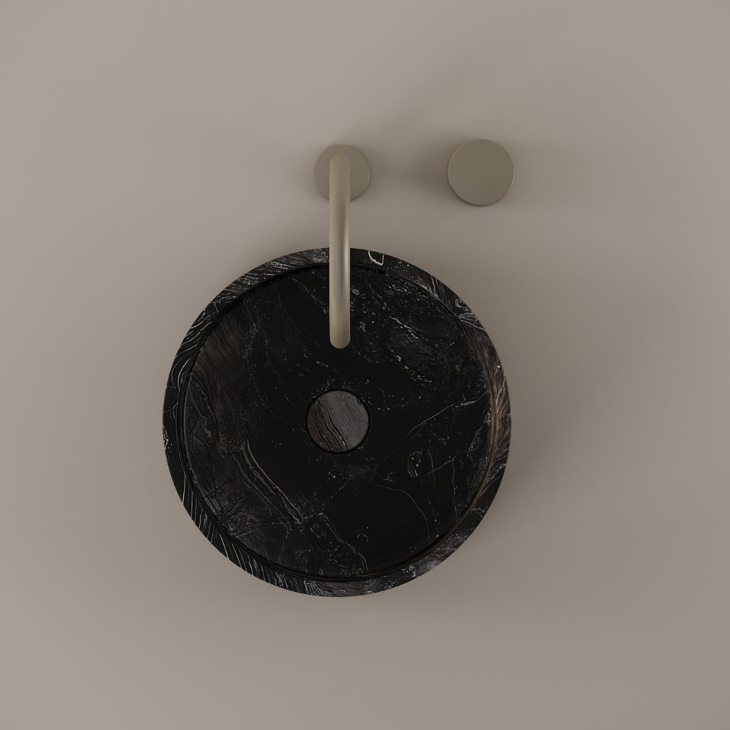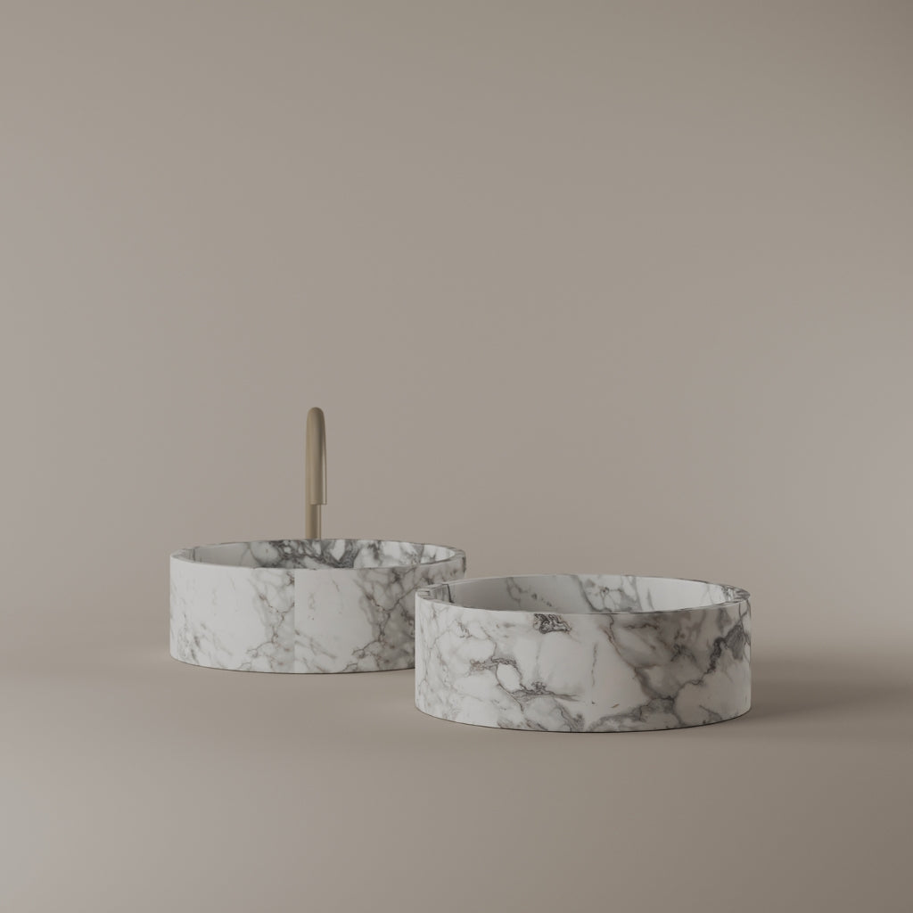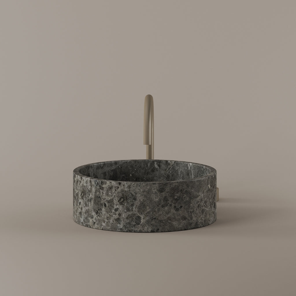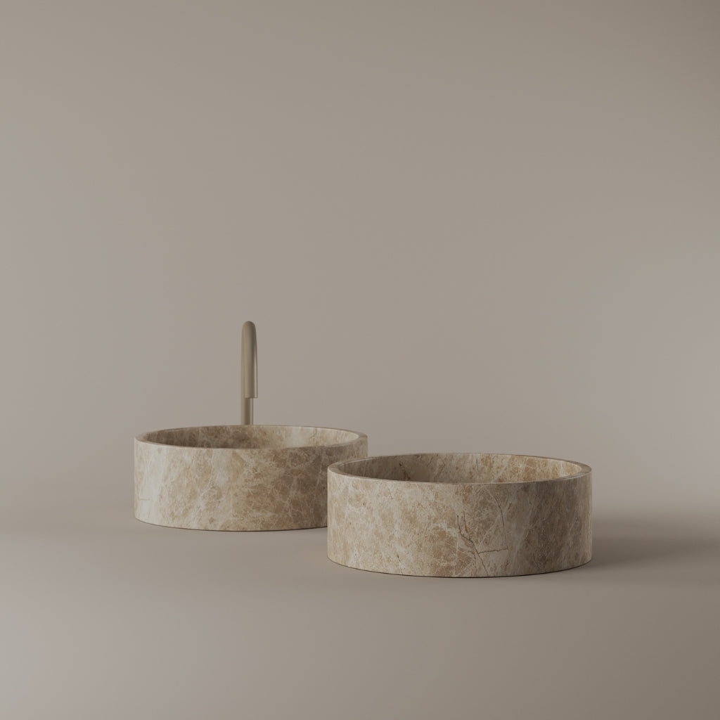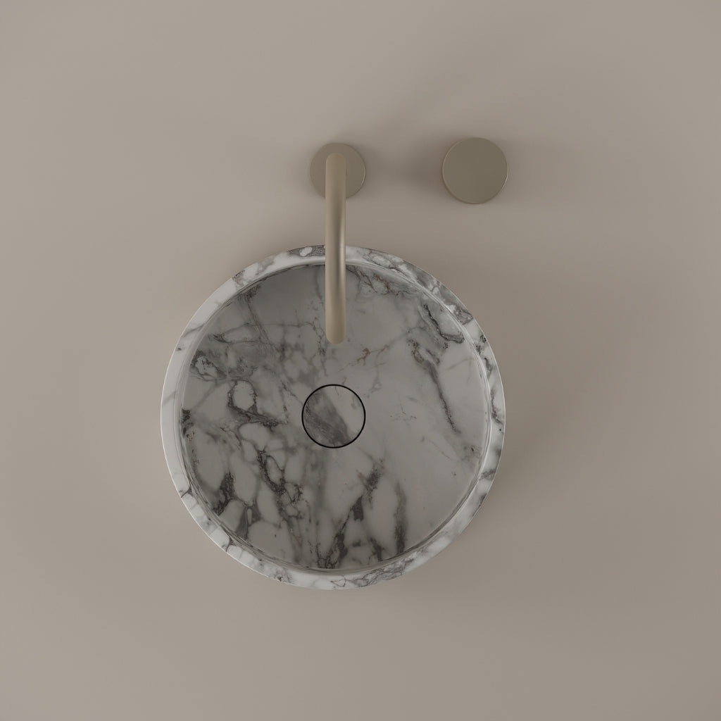 Carved from marble at 14 inches, this round vessel sink presents a defined circular basin with a balanced edge. The smooth interior supports daily use while maintaining a composed form. Its surface variation adds depth to modern bathroom spaces.