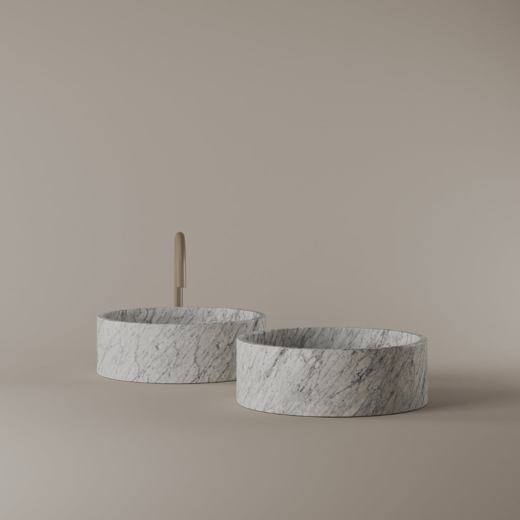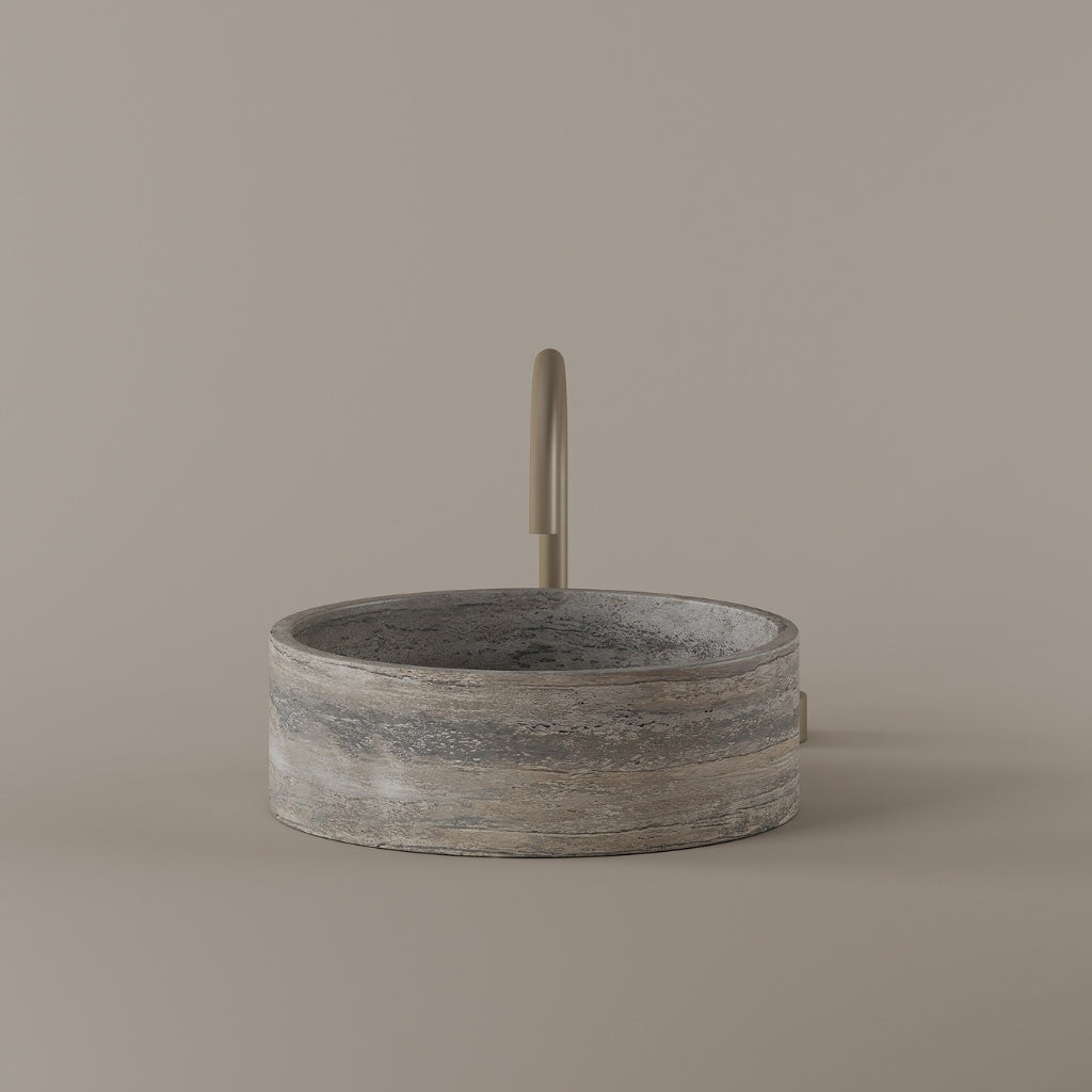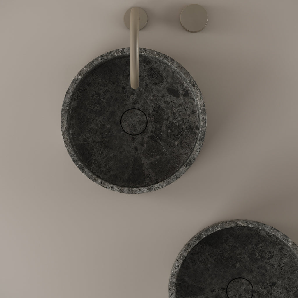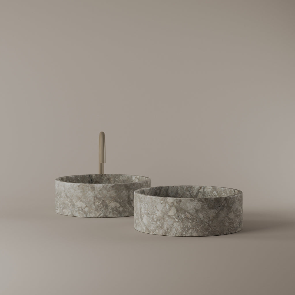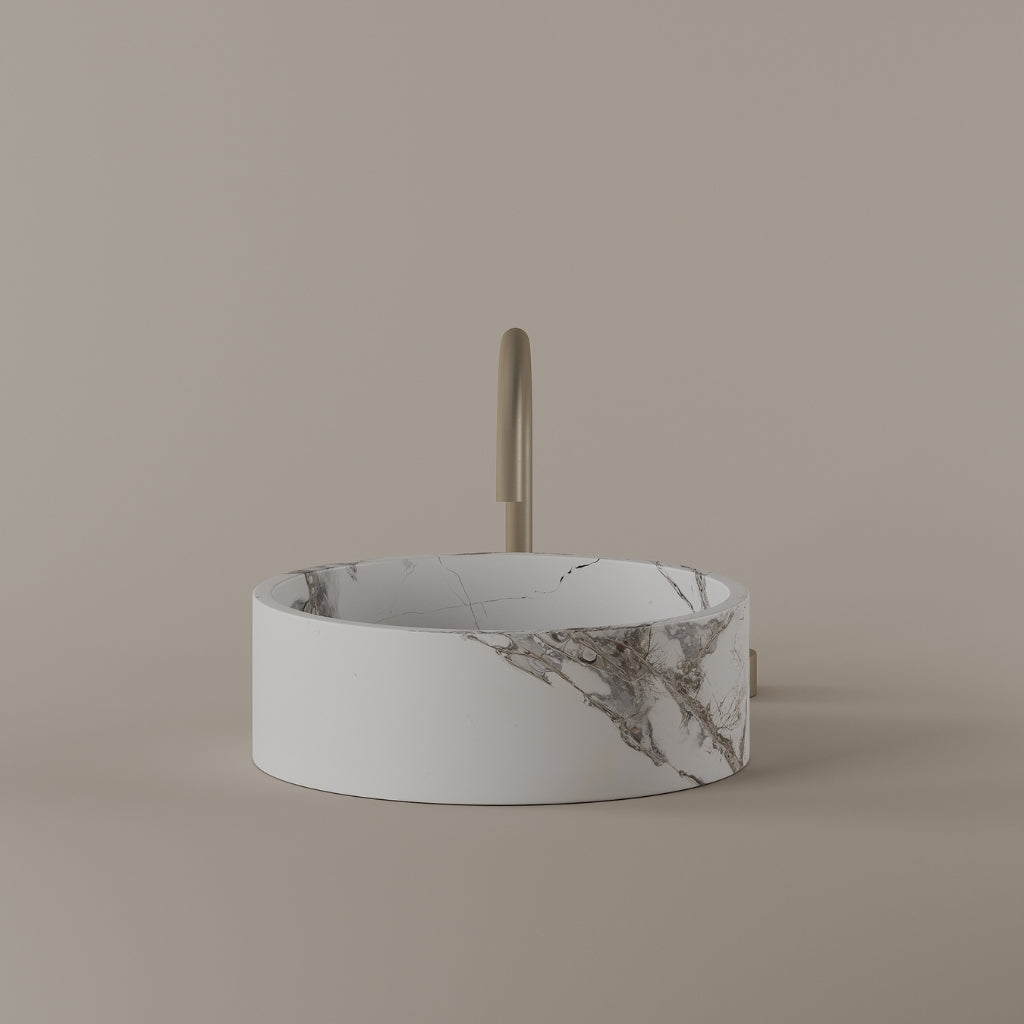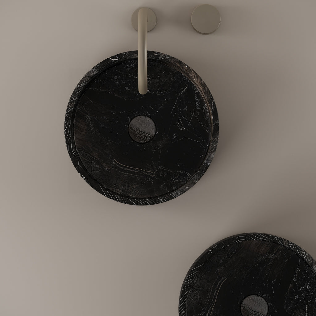 Carved from marble at 14 inches, this round vessel sink presents a defined circular basin with a balanced edge. The smooth interior supports daily use while maintaining a composed form. Its surface variation adds depth to modern bathroom spaces.