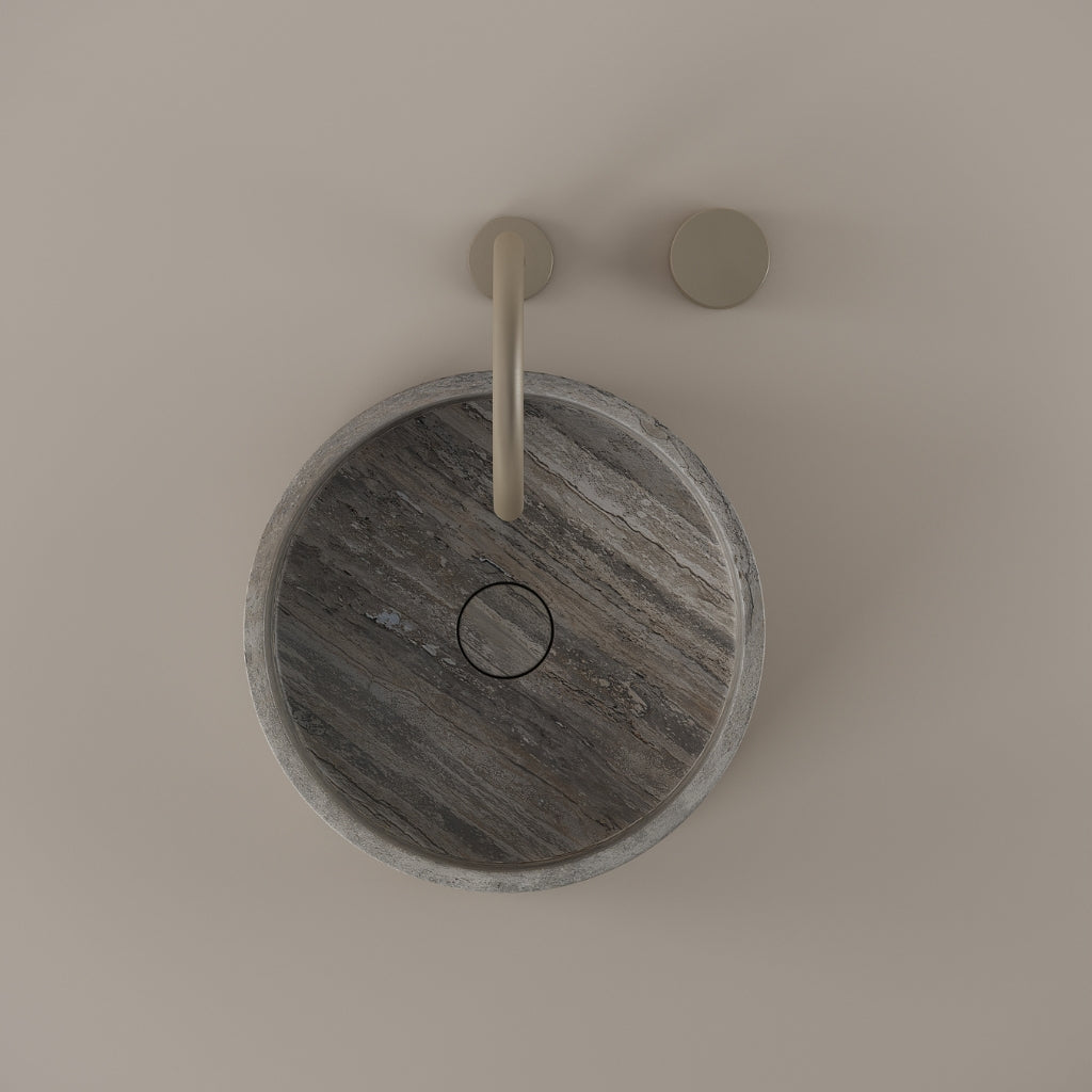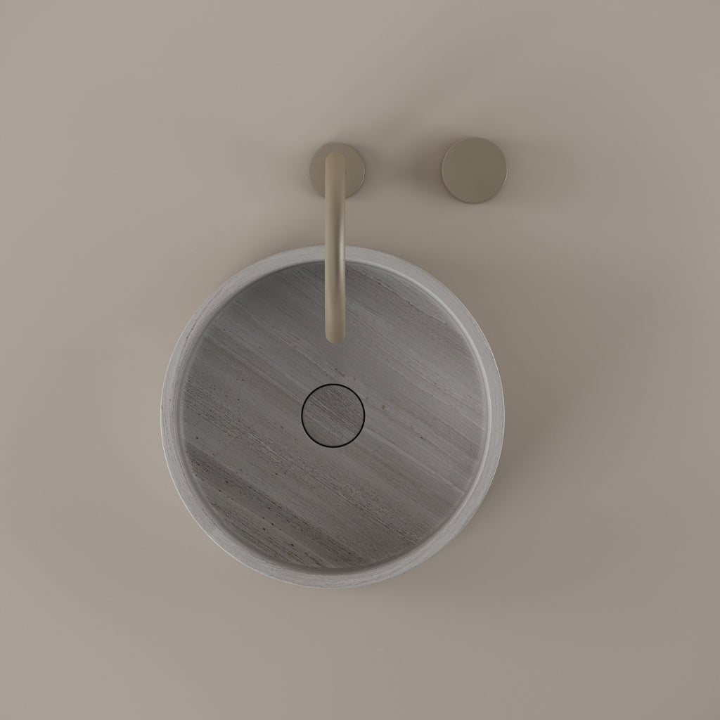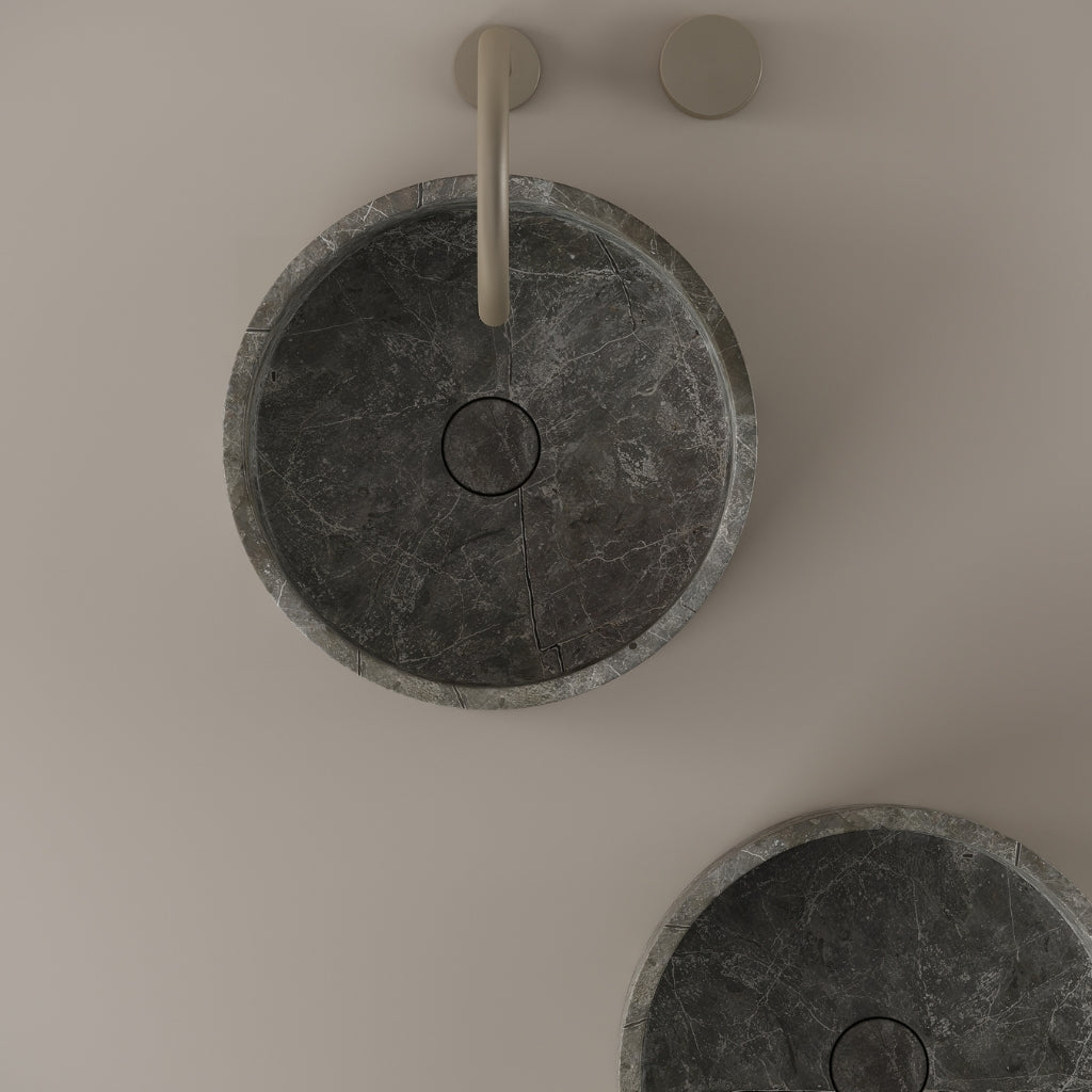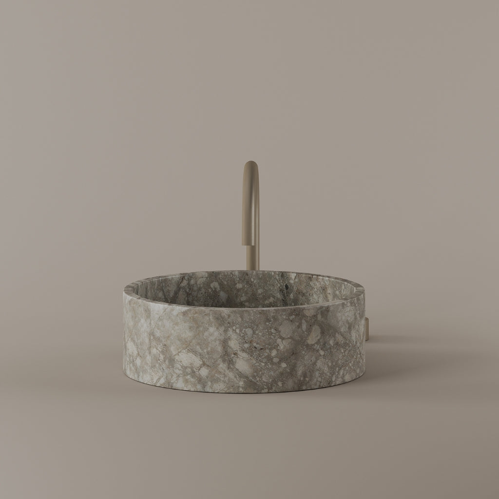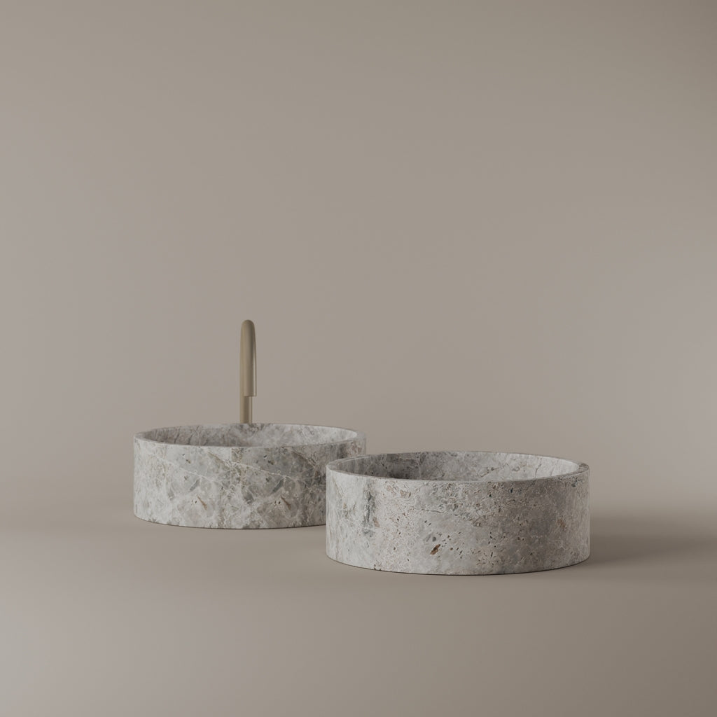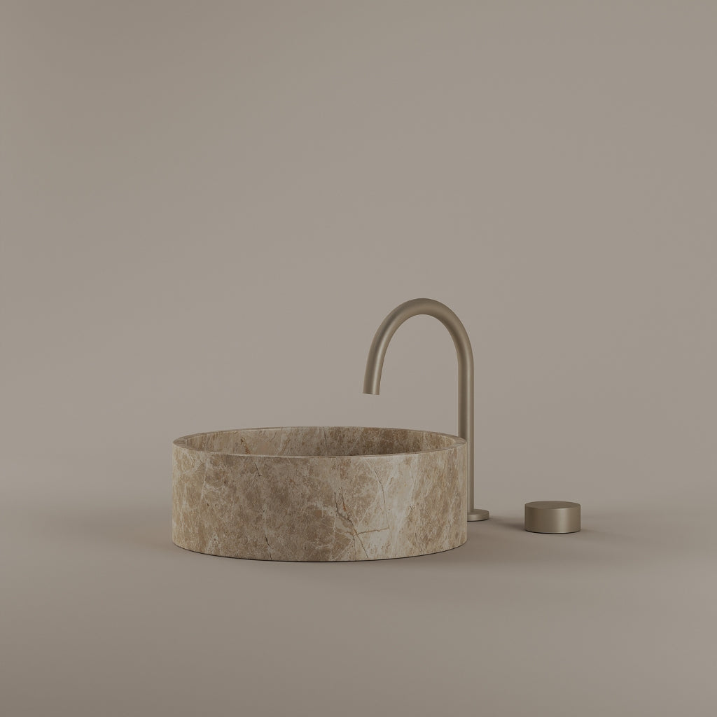 Carved from marble at 14 inches, this round vessel sink presents a defined circular basin with a balanced edge. The smooth interior supports daily use while maintaining a composed form. Its surface variation adds depth to modern bathroom spaces.