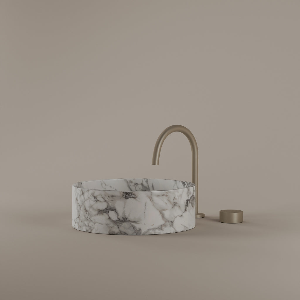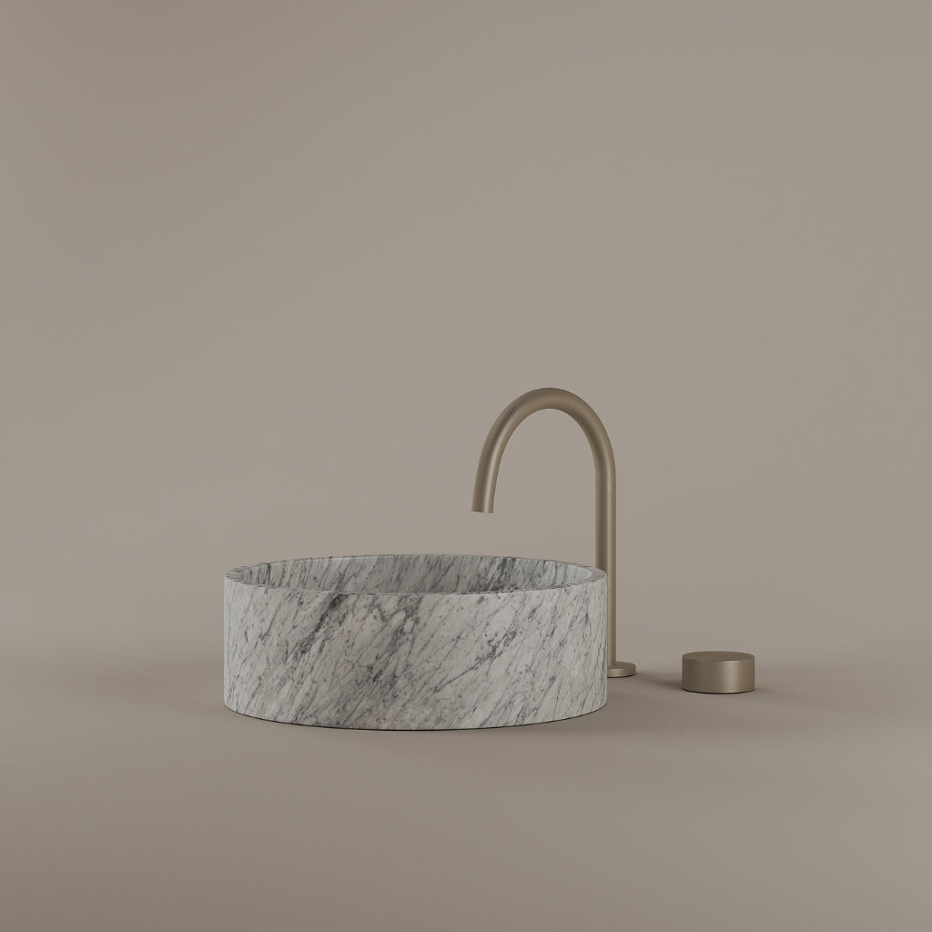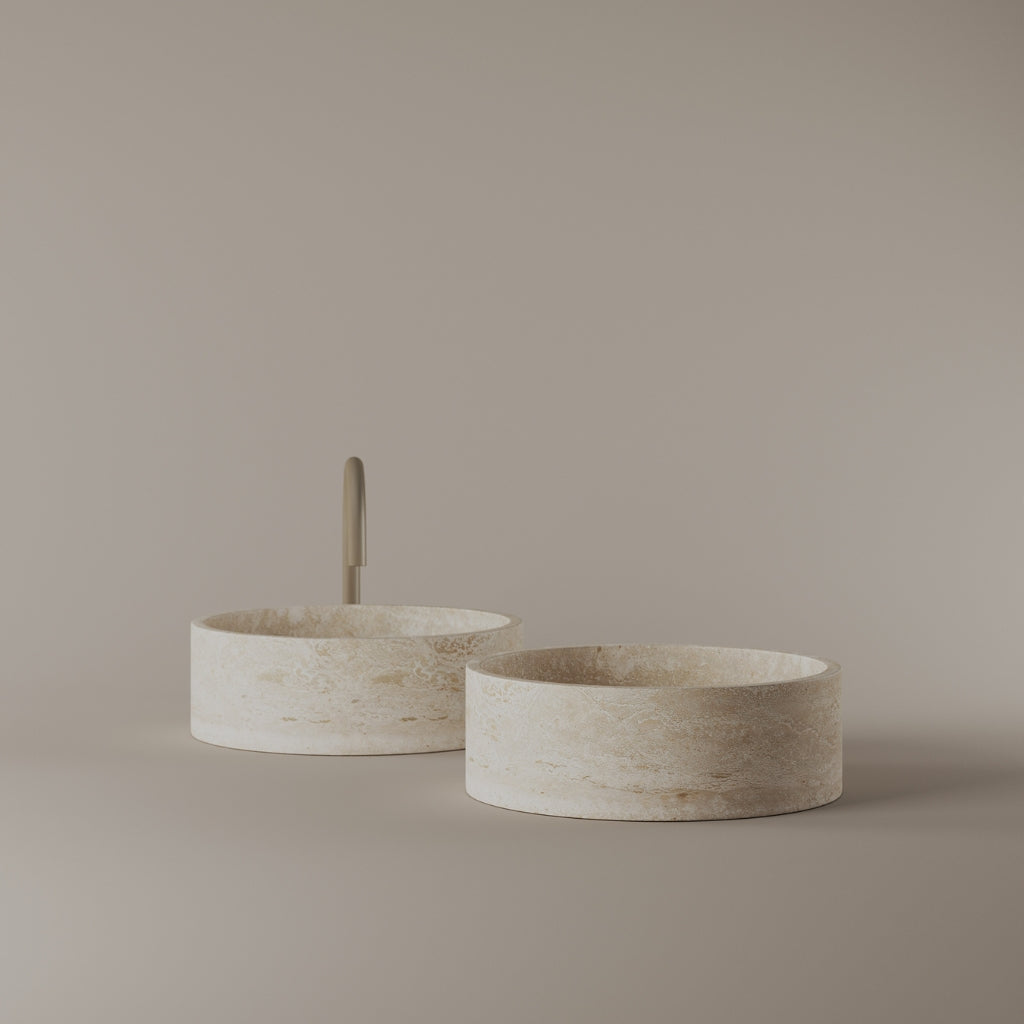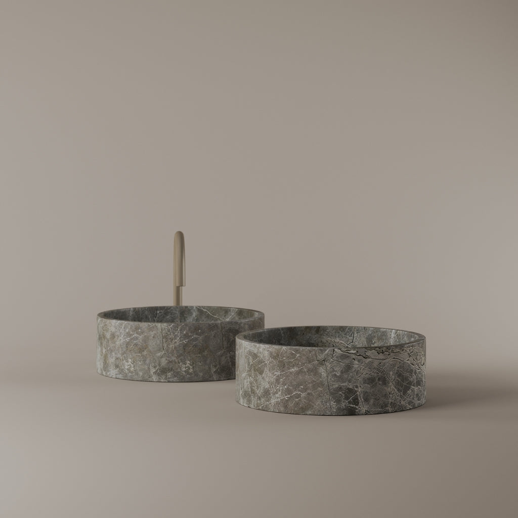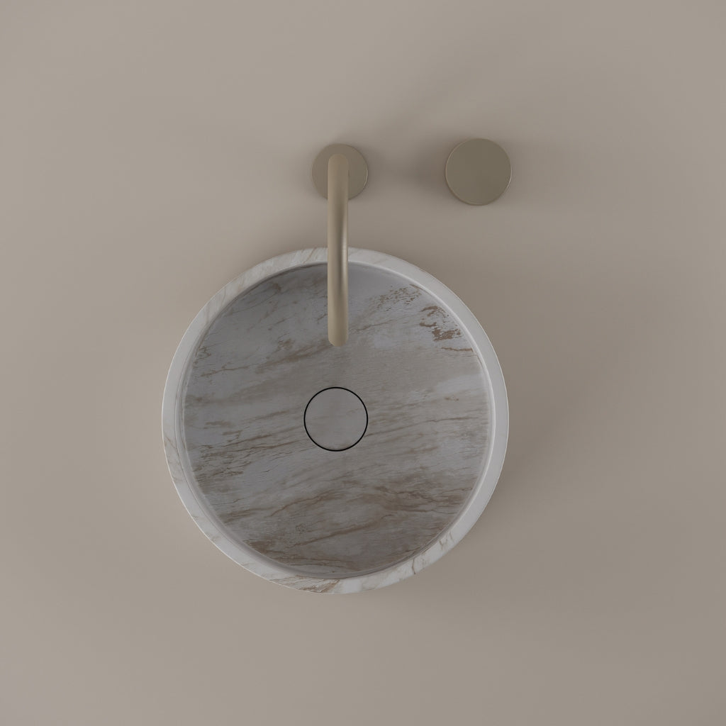 Carved from marble at 14 inches, this round vessel sink presents a defined circular basin with a balanced edge. The smooth interior supports daily use while maintaining a composed form. Its surface variation adds depth to modern bathroom spaces.