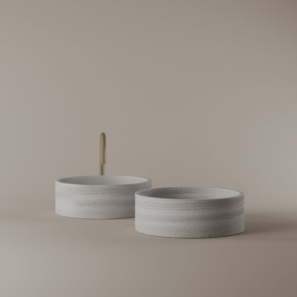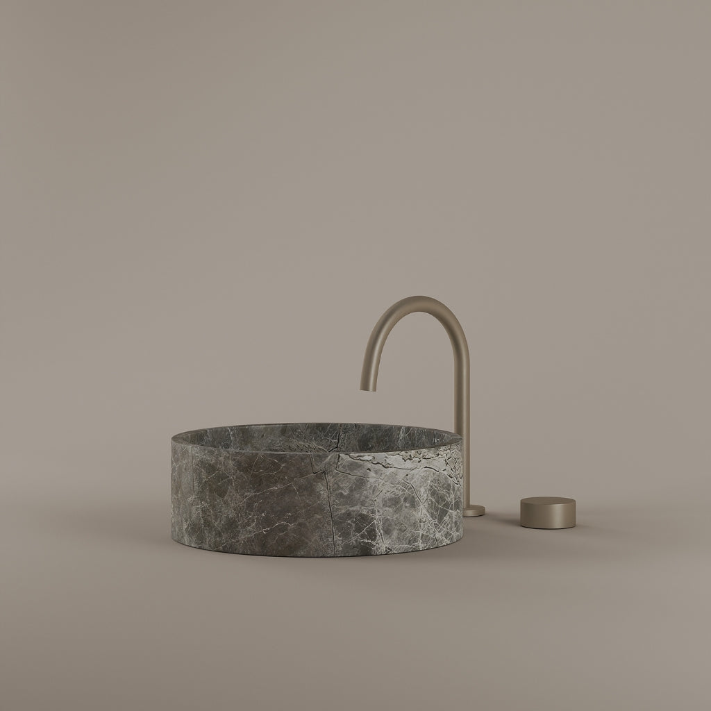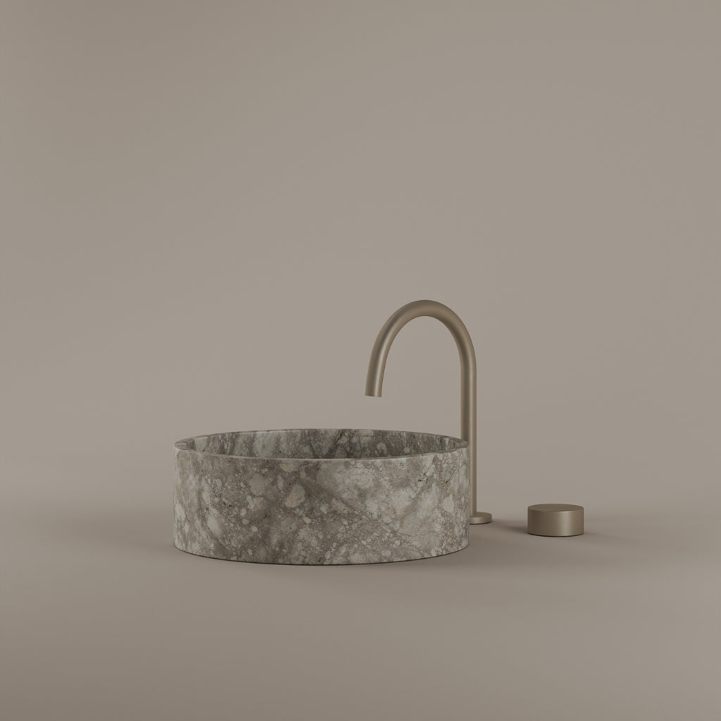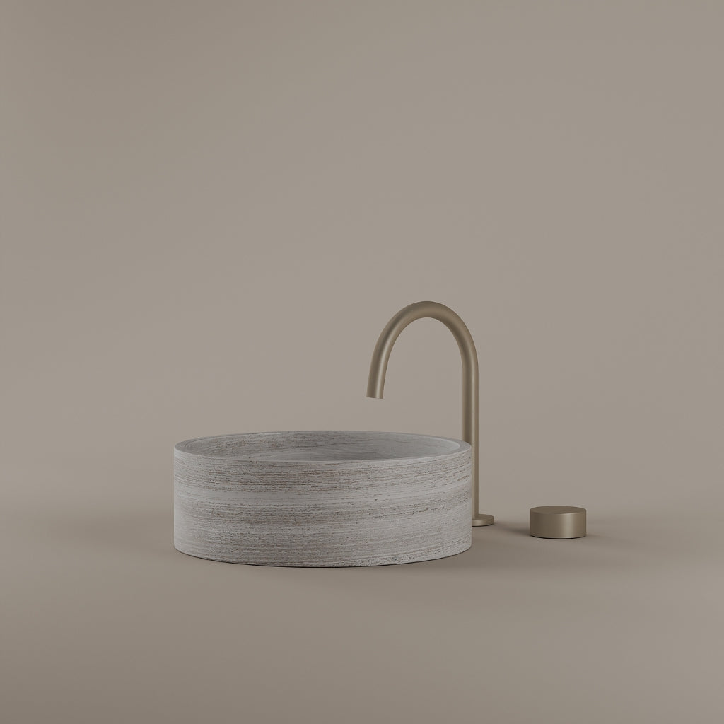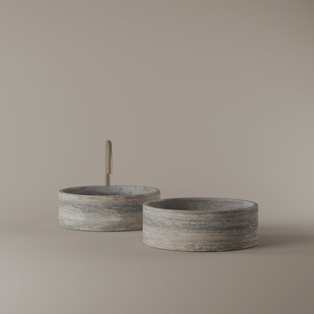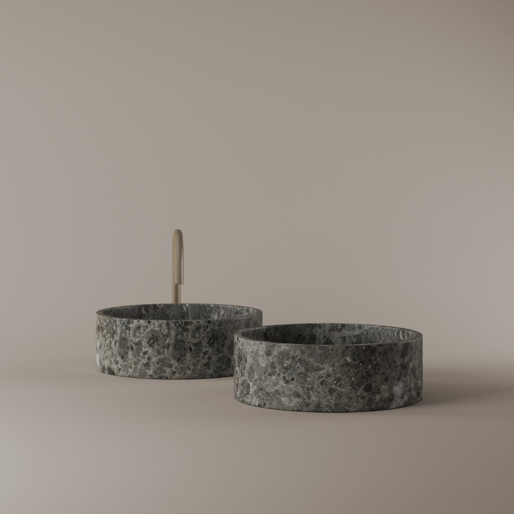 Carved from marble at 14 inches, this round vessel sink presents a defined circular basin with a balanced edge. The smooth interior supports daily use while maintaining a composed form. Its surface variation adds depth to modern bathroom spaces.