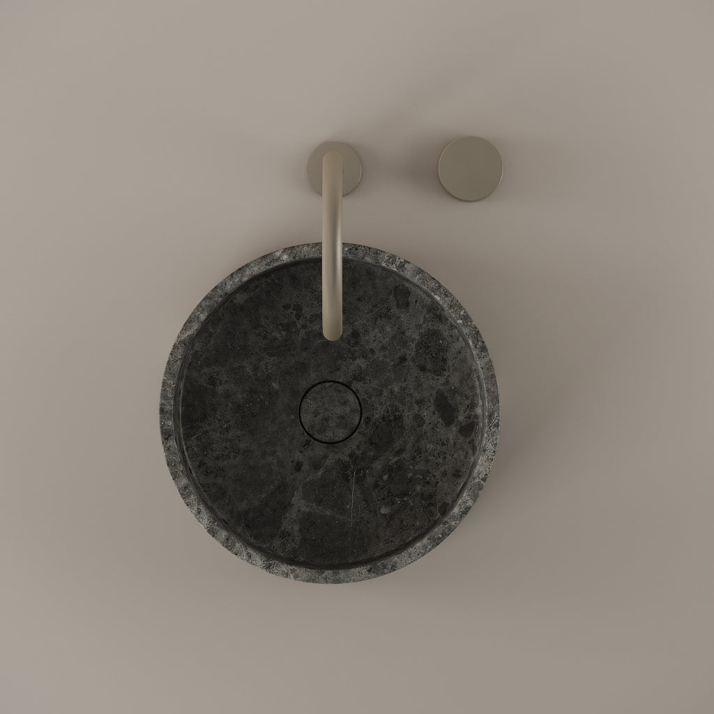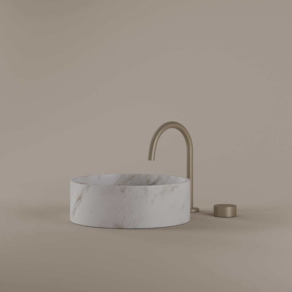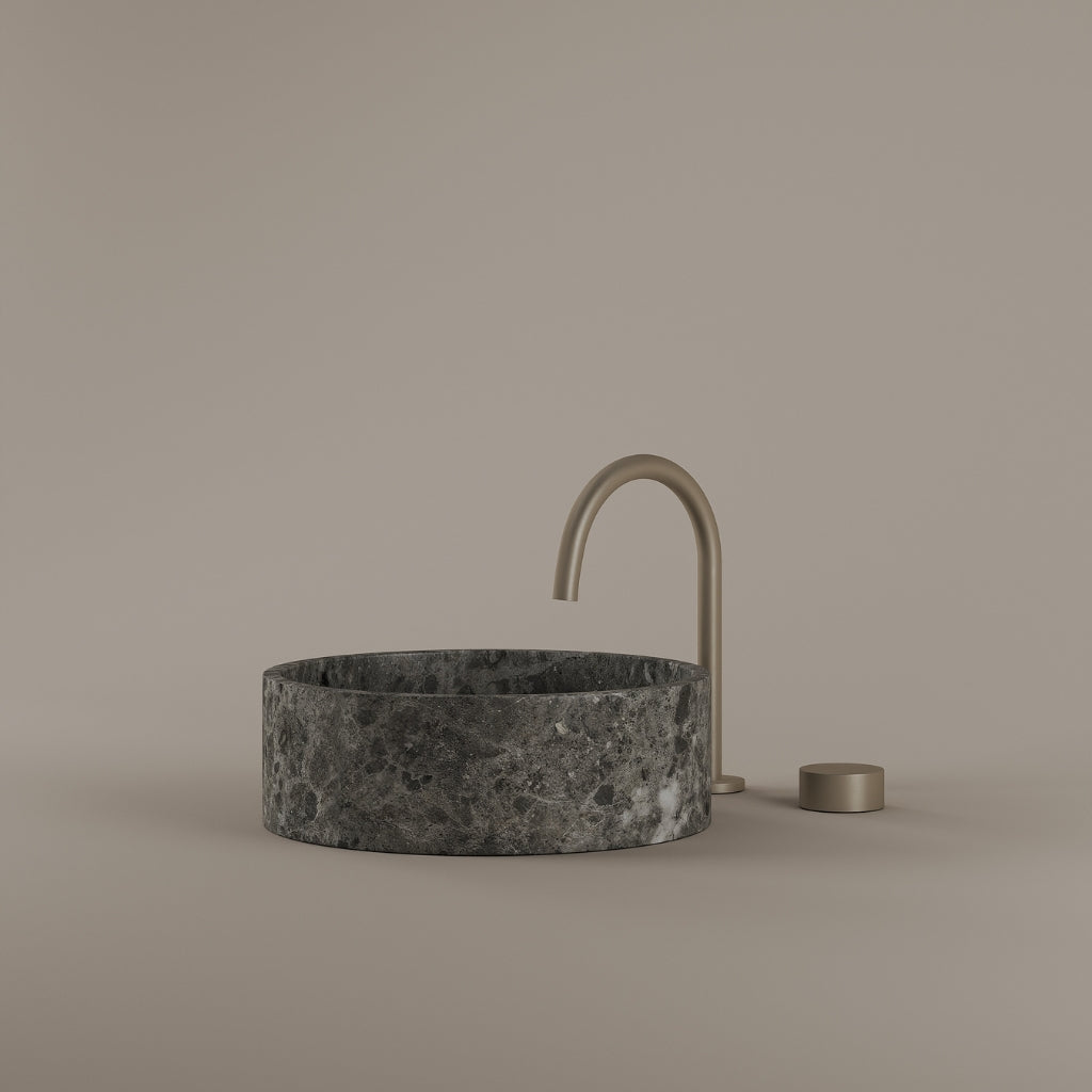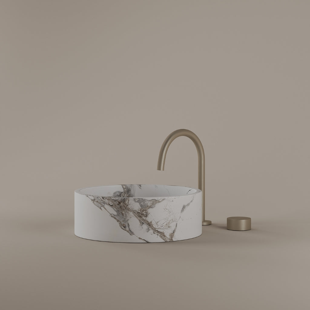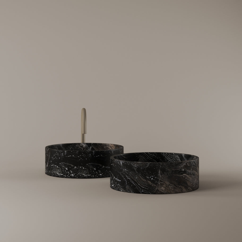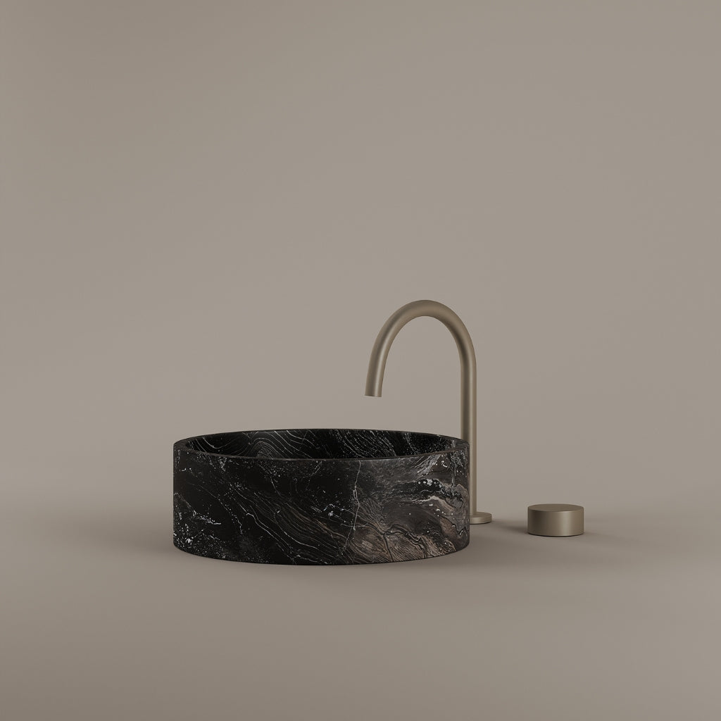 Carved from marble at 14 inches, this round vessel sink presents a defined circular basin with a balanced edge. The smooth interior supports daily use while maintaining a composed form. Its surface variation adds depth to modern bathroom spaces.
