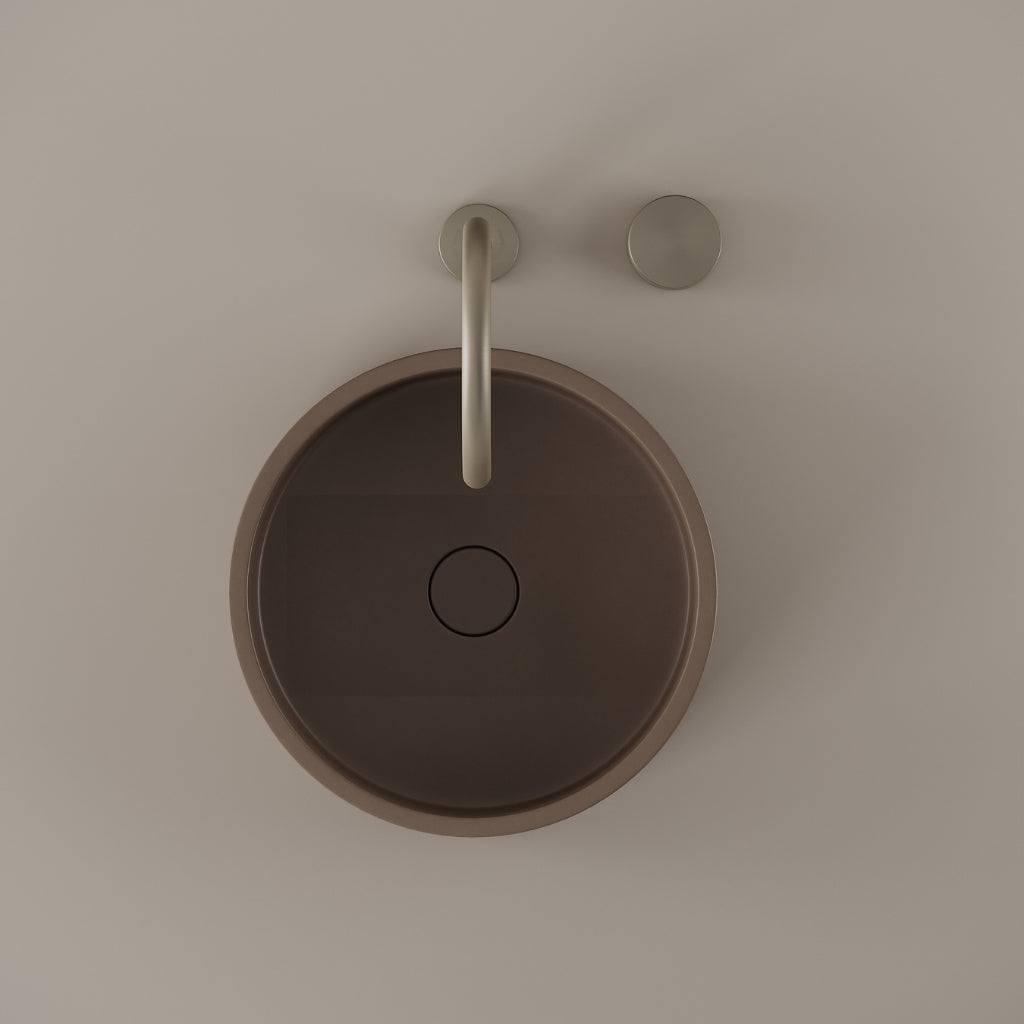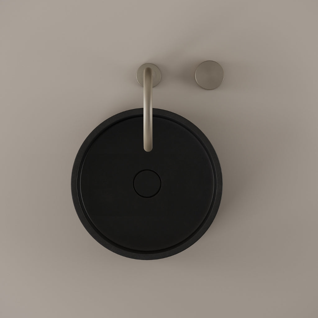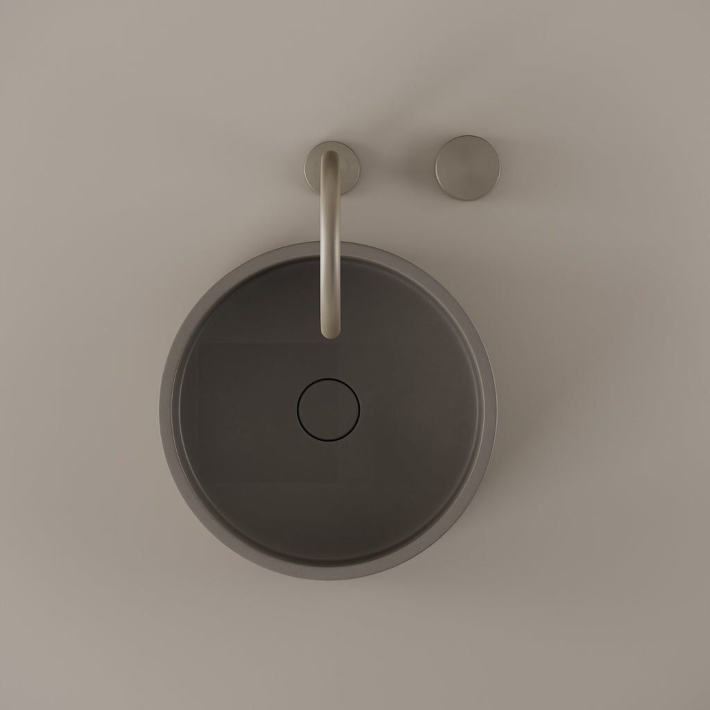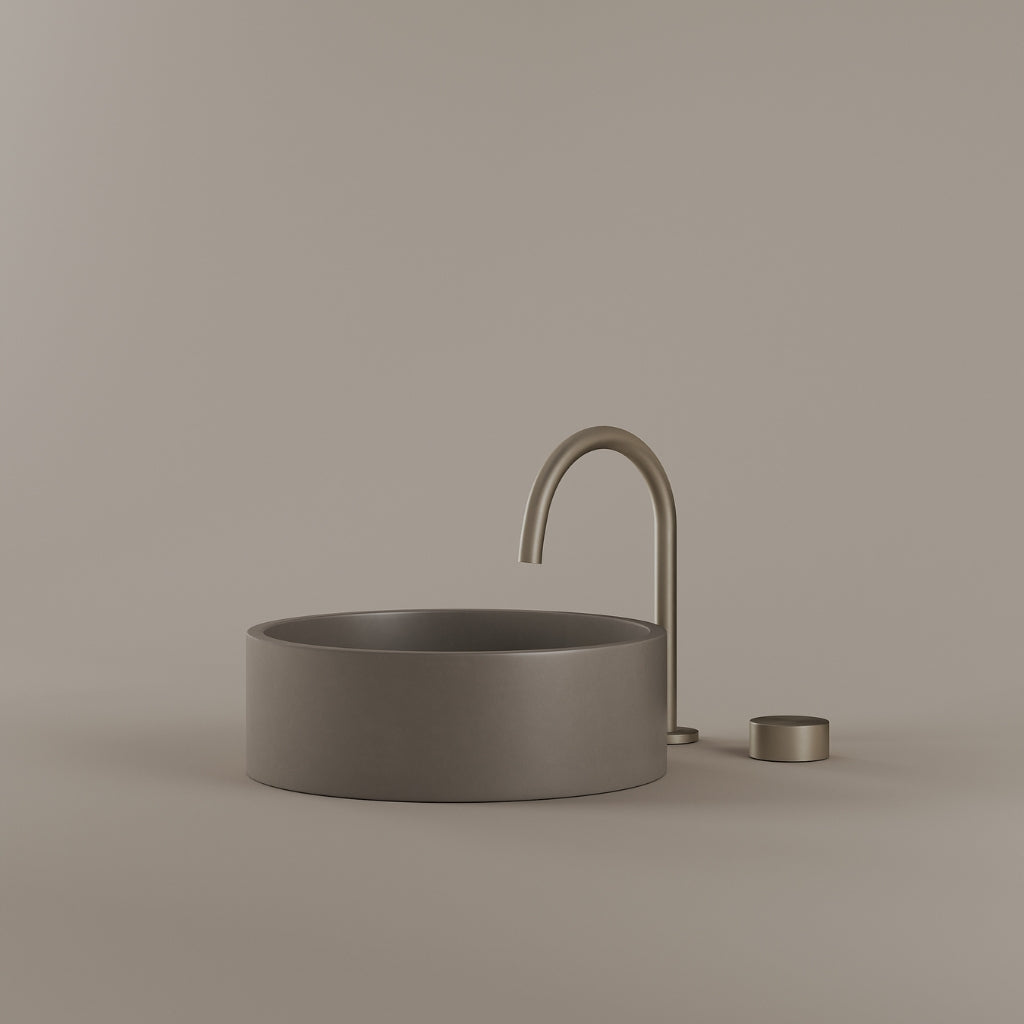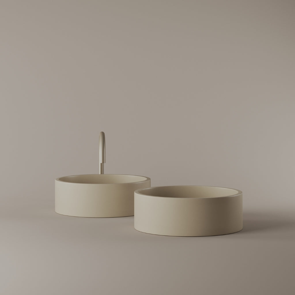Cast in concrete at 14 inches, this round vessel sink presents a defined circular basin with a consistent and balanced edge. The curvature maintains visual continuity while supporting daily use. Its concrete construction delivers a modern and composed presence.
