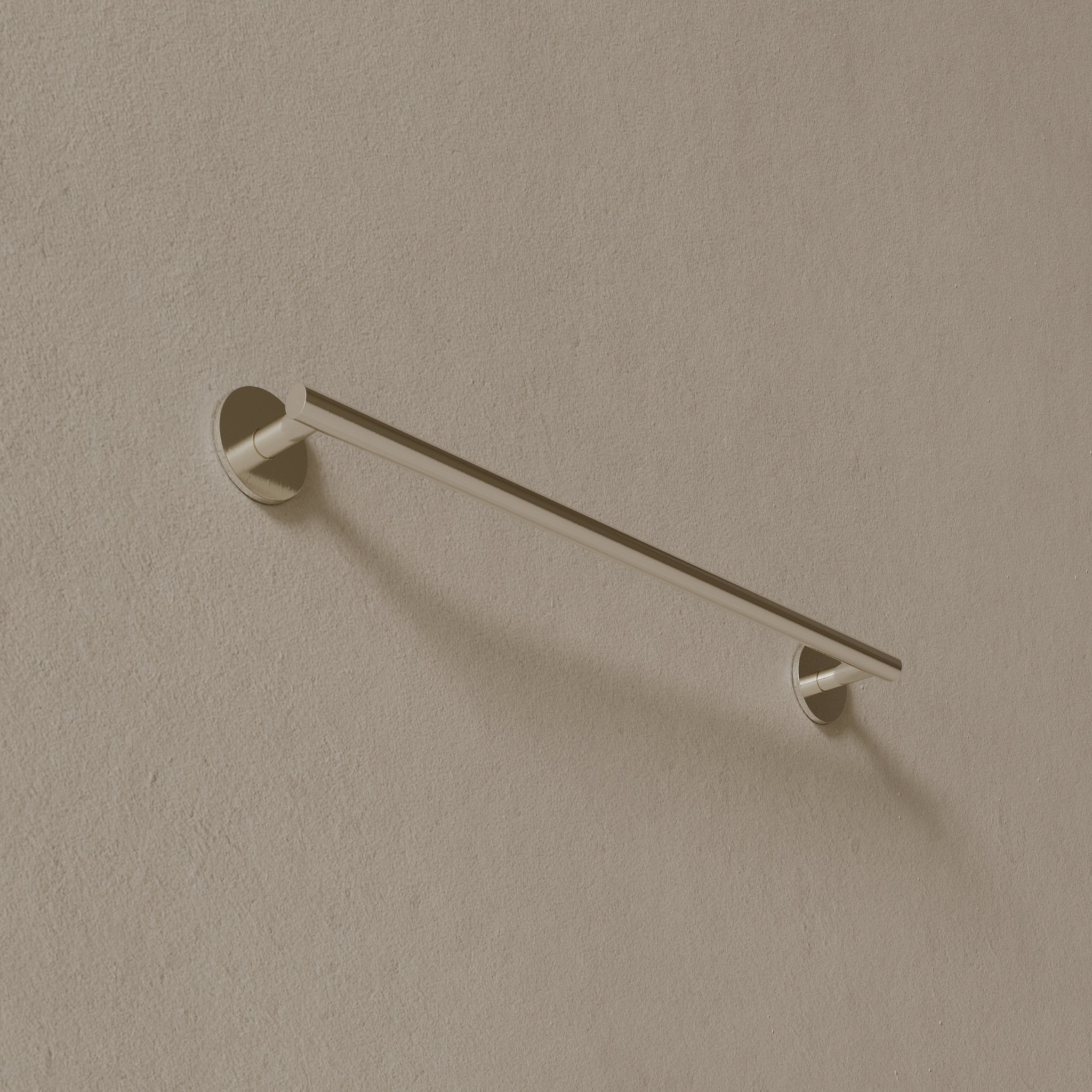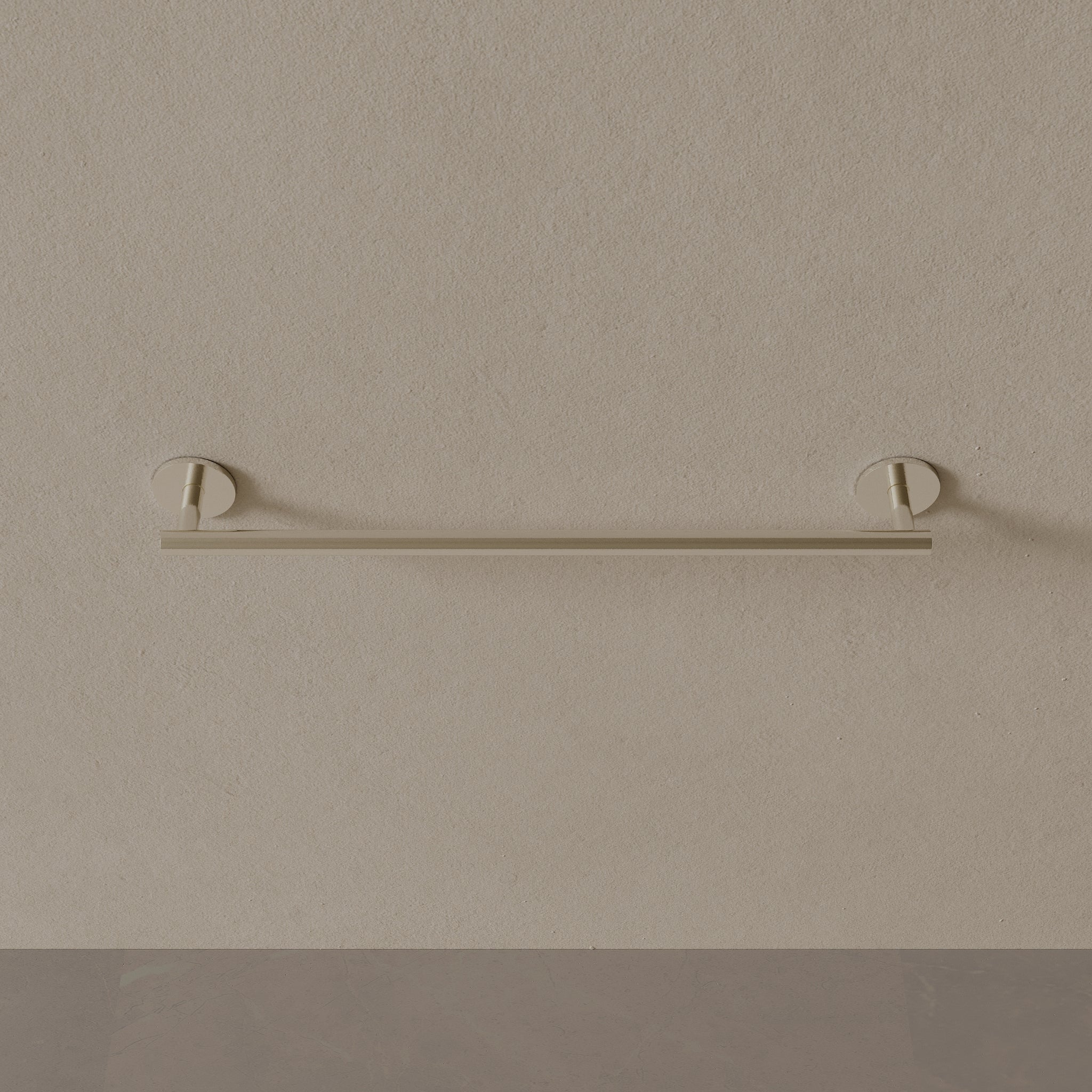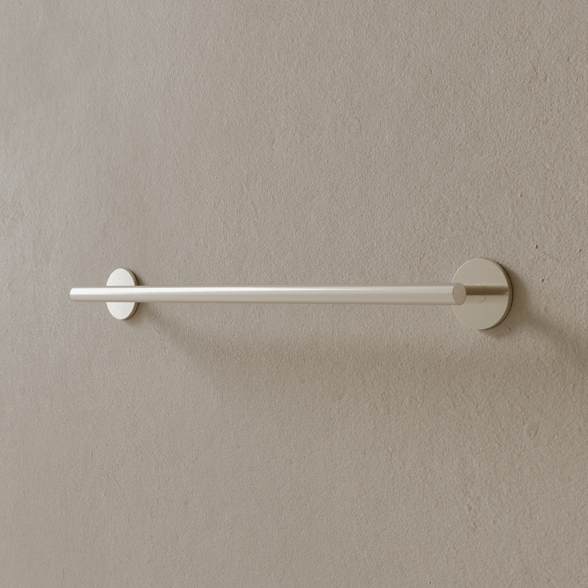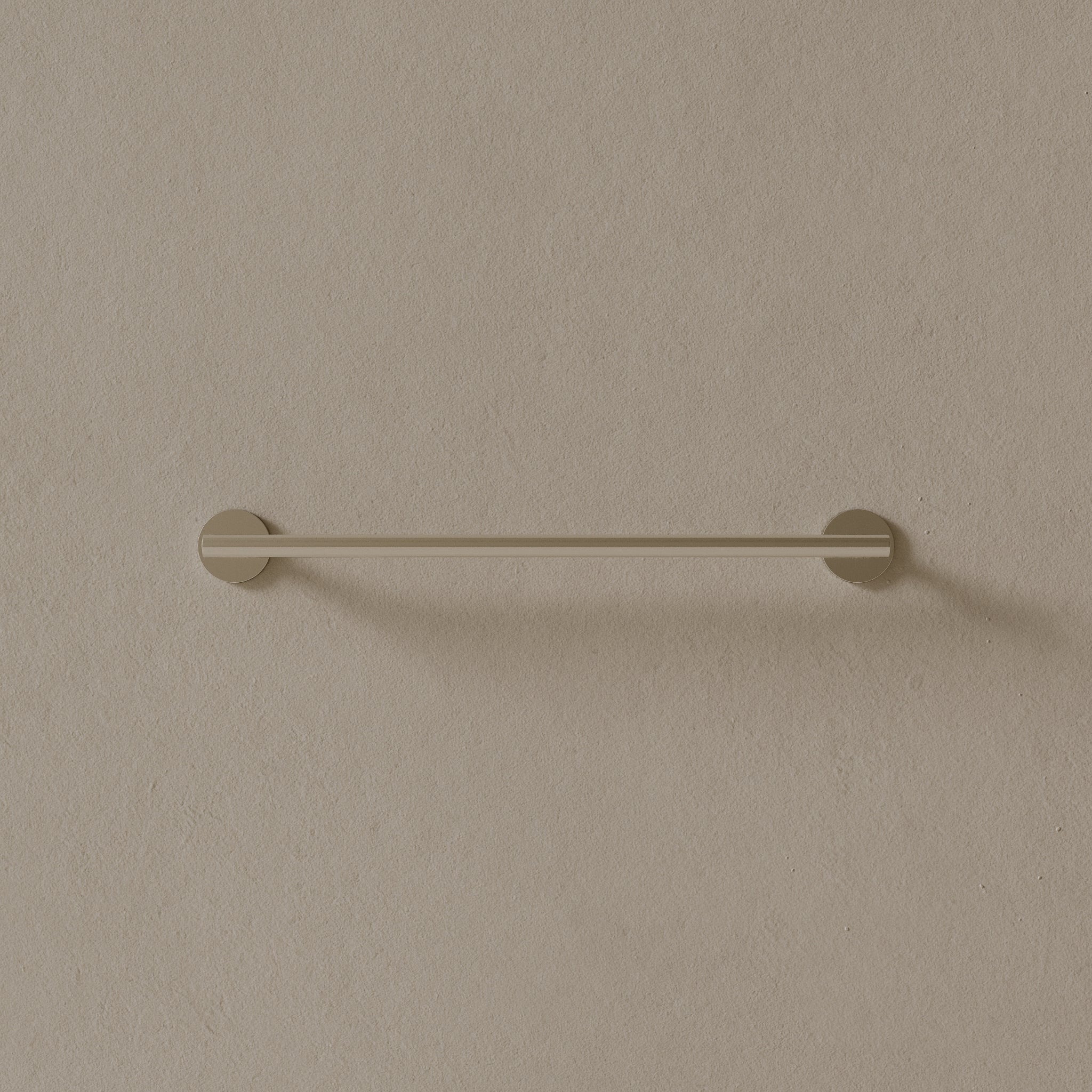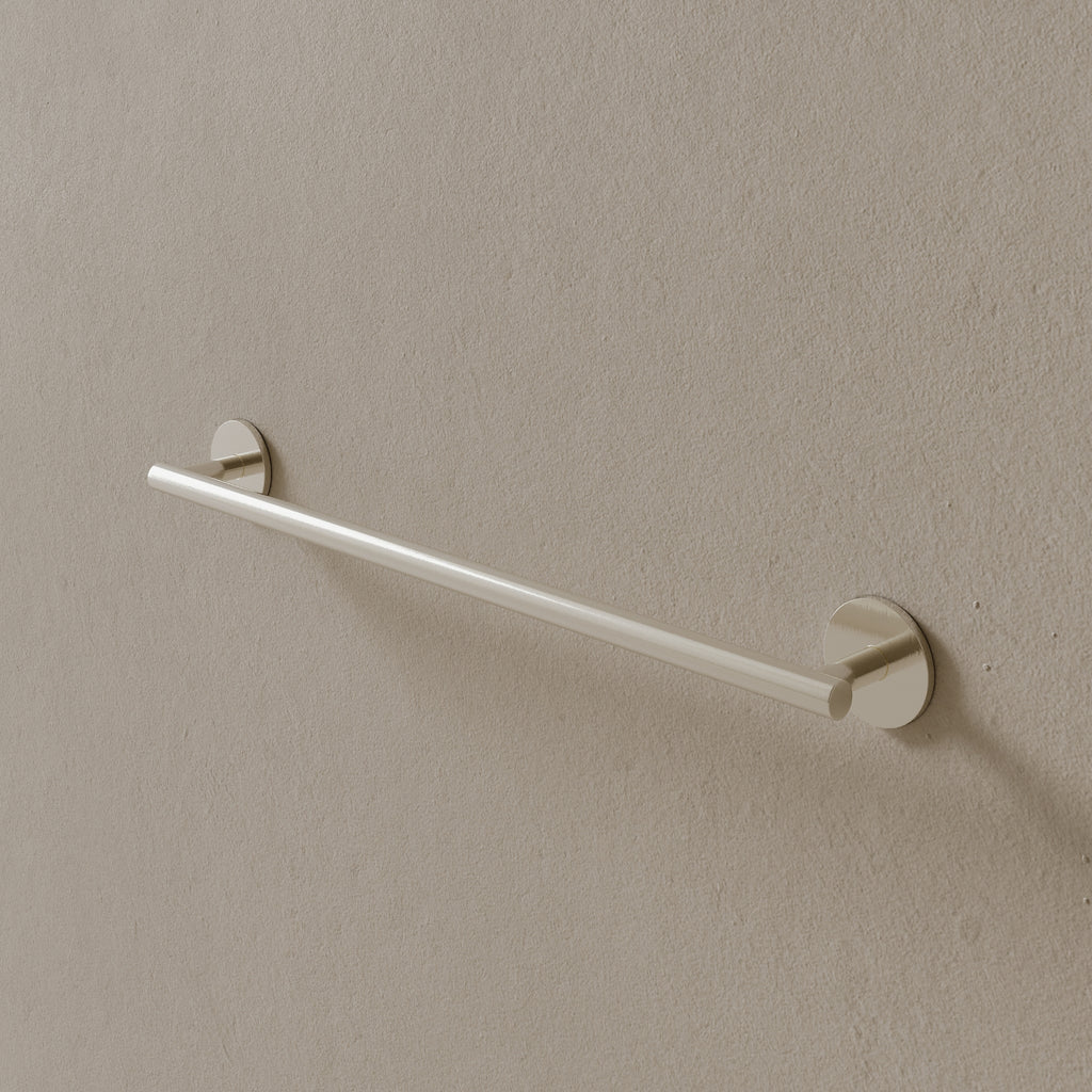 Finished in corrosion-resistant PVD and constructed with a solid brass core, this 26-inch modern towel rod integrates effortlessly into modern bathrooms, offering extended length for holding multiple towels.